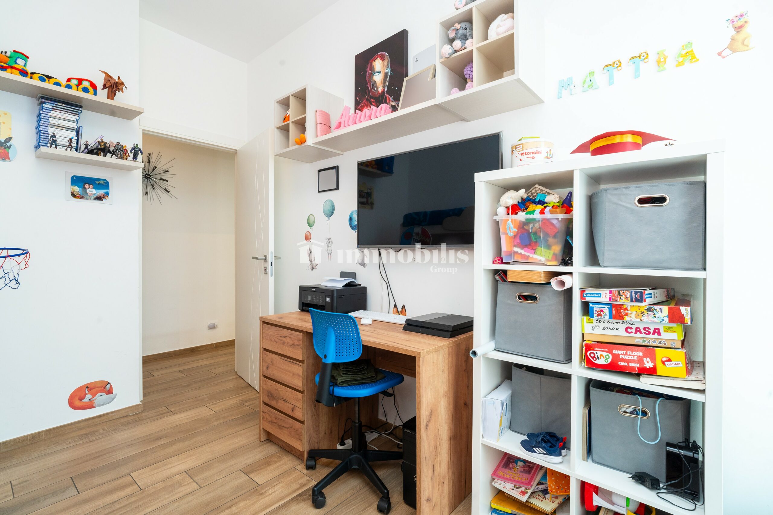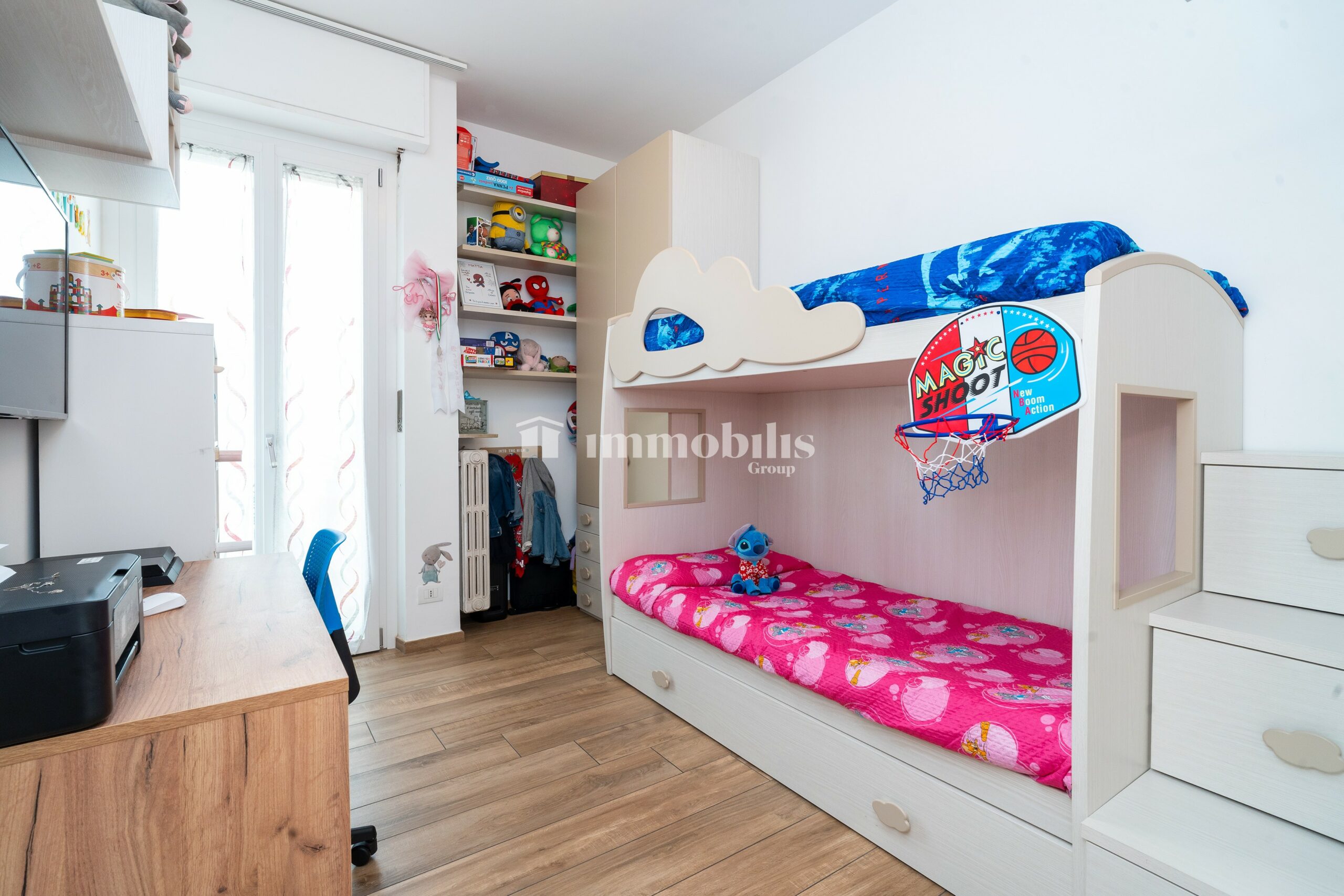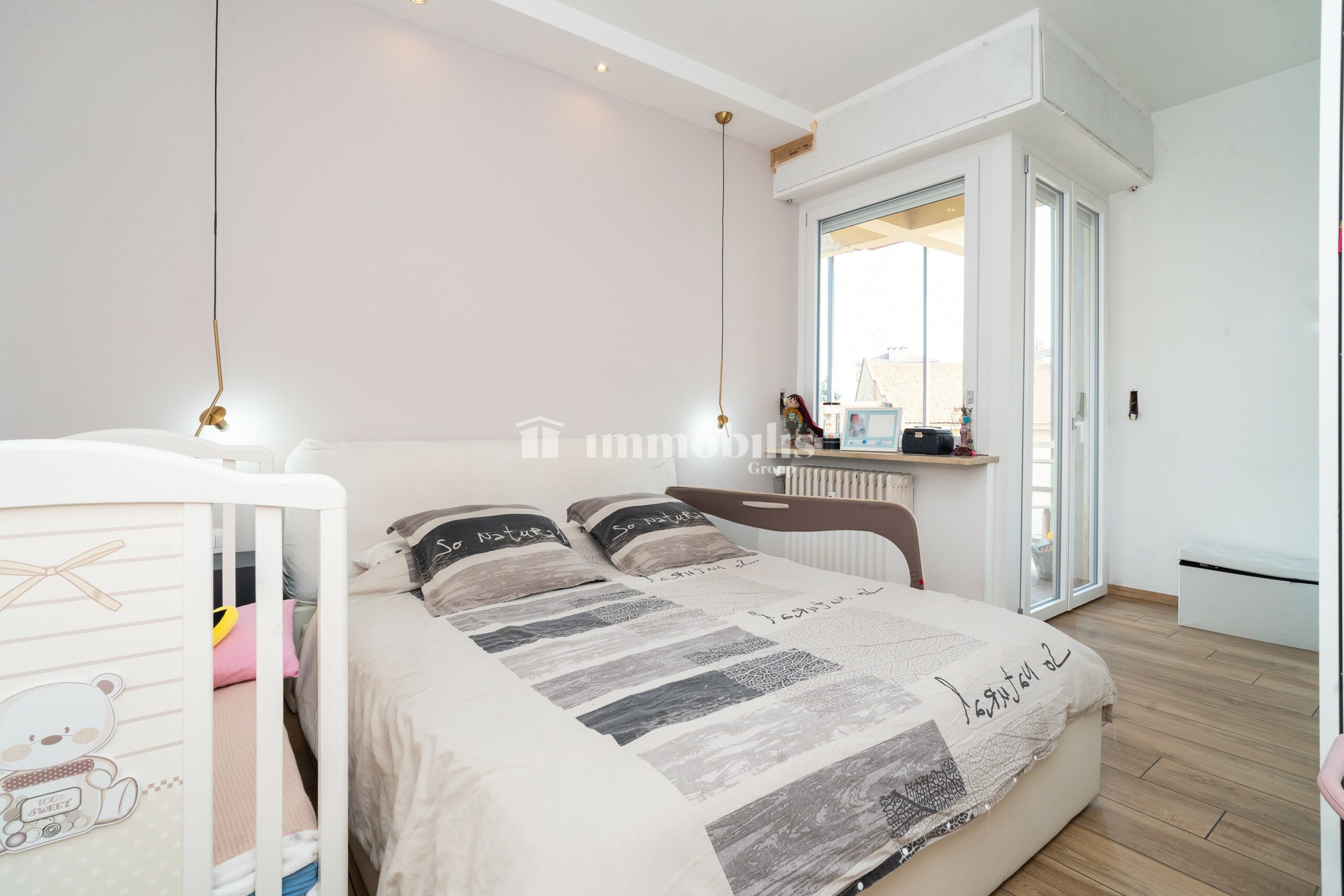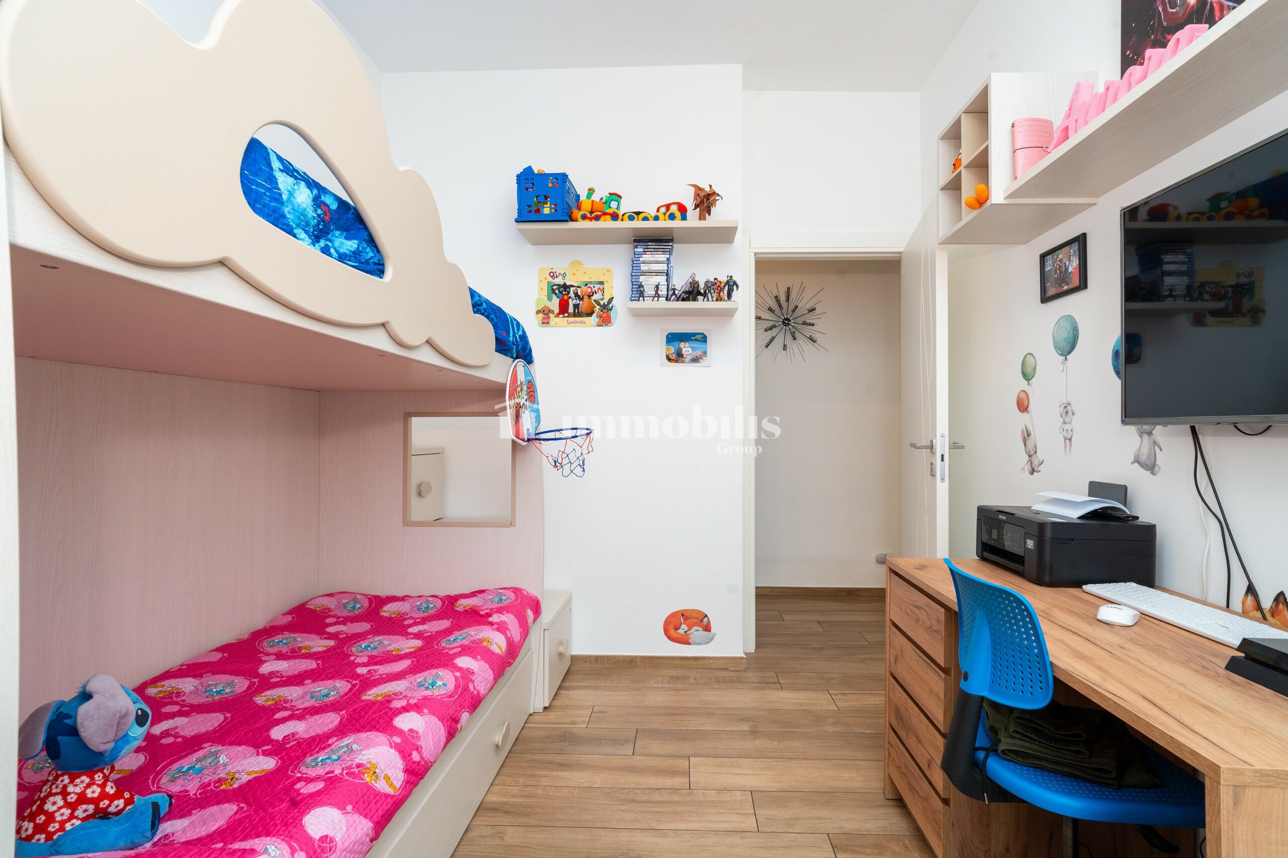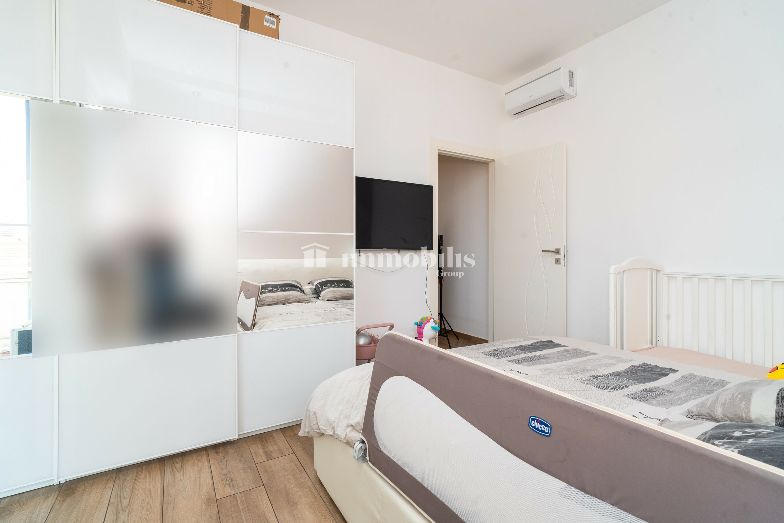 La zona notte comprende due camere da letto: una attualmente utilizzata come matrimoniale, l’altra come cameretta, ma entrambe facilmente adattabili alle proprie esigenze. Dalla camera principale si accede a un secondo terrazzino, che garantisce ulteriore luminosità e uno sfogo esterno riservato.