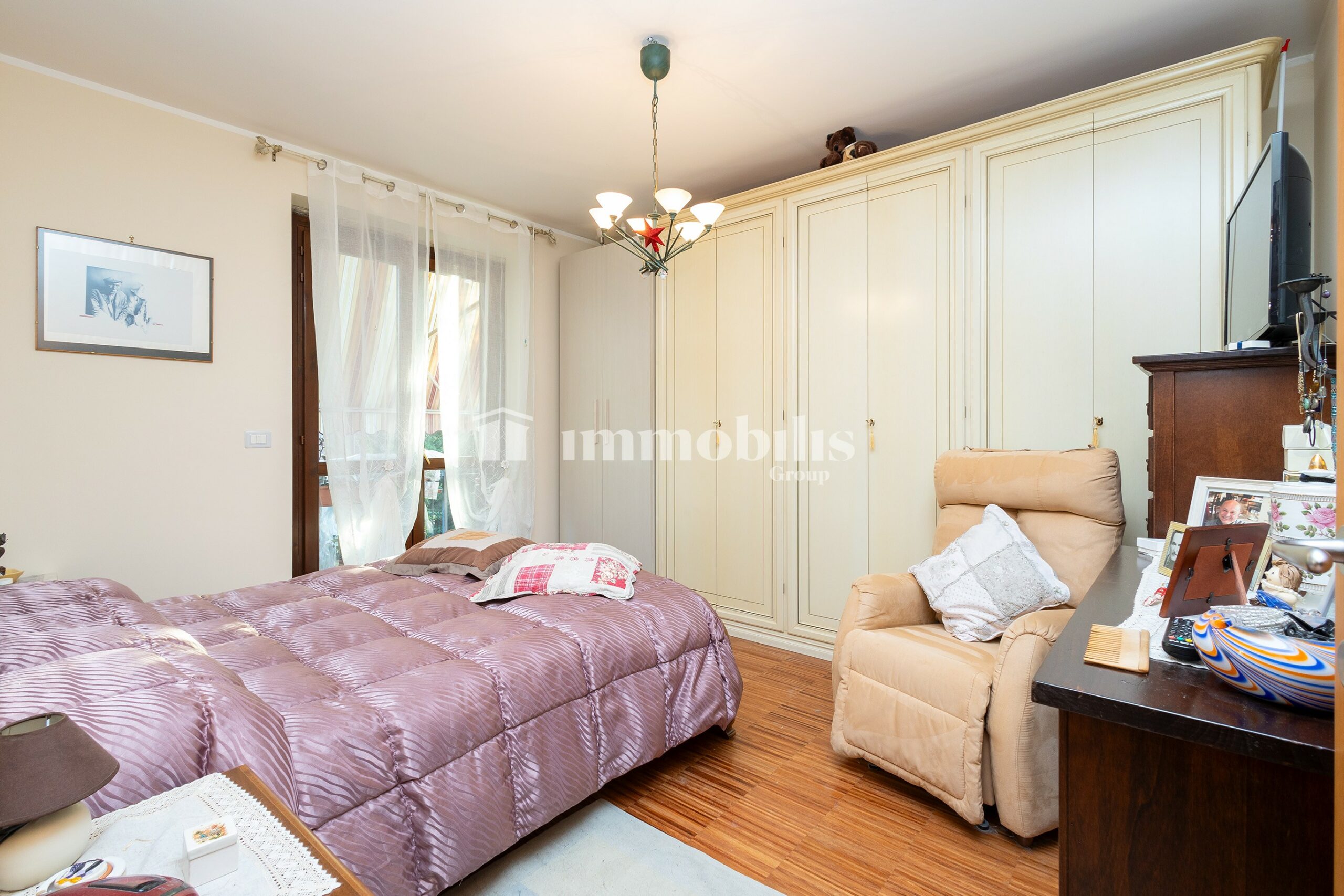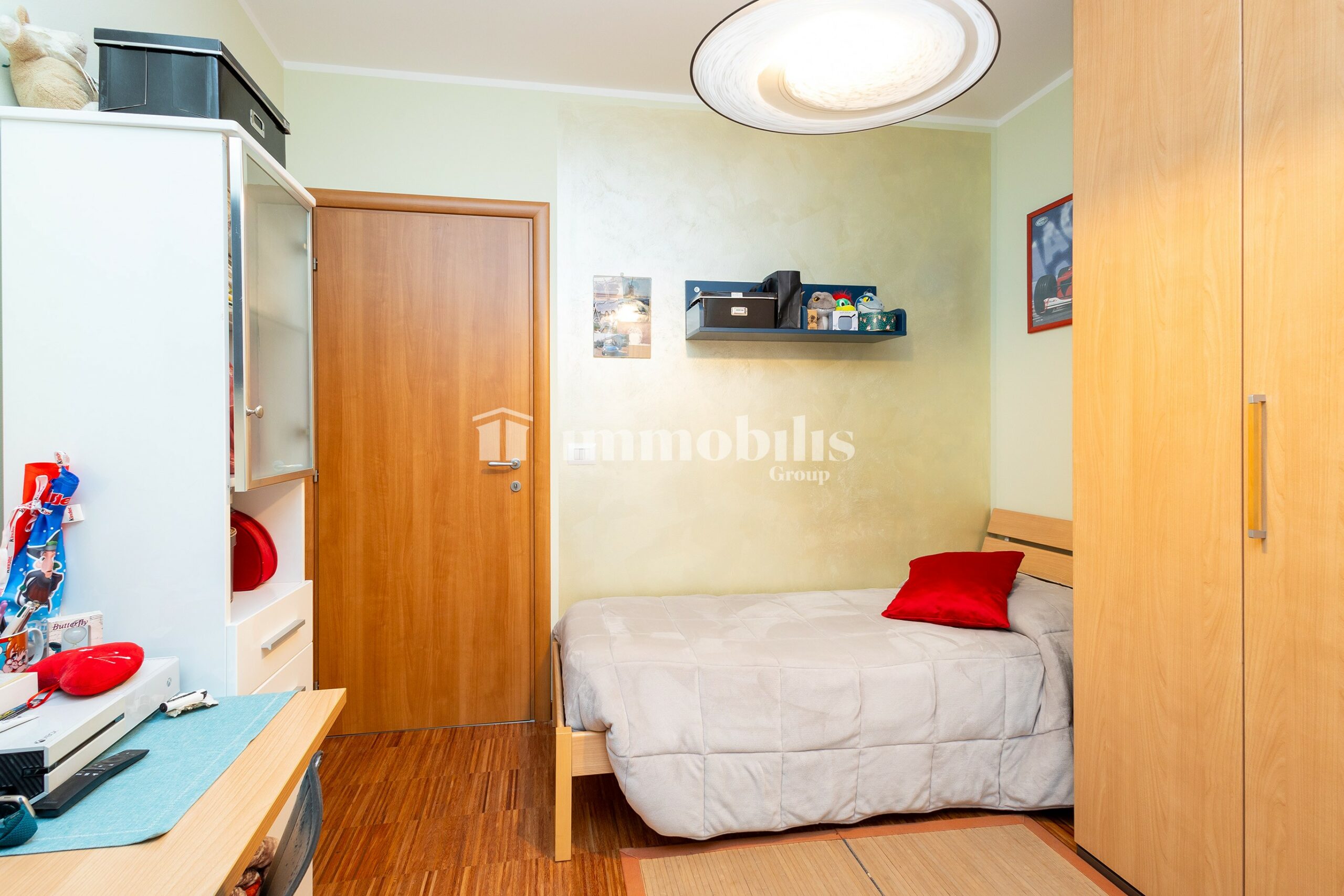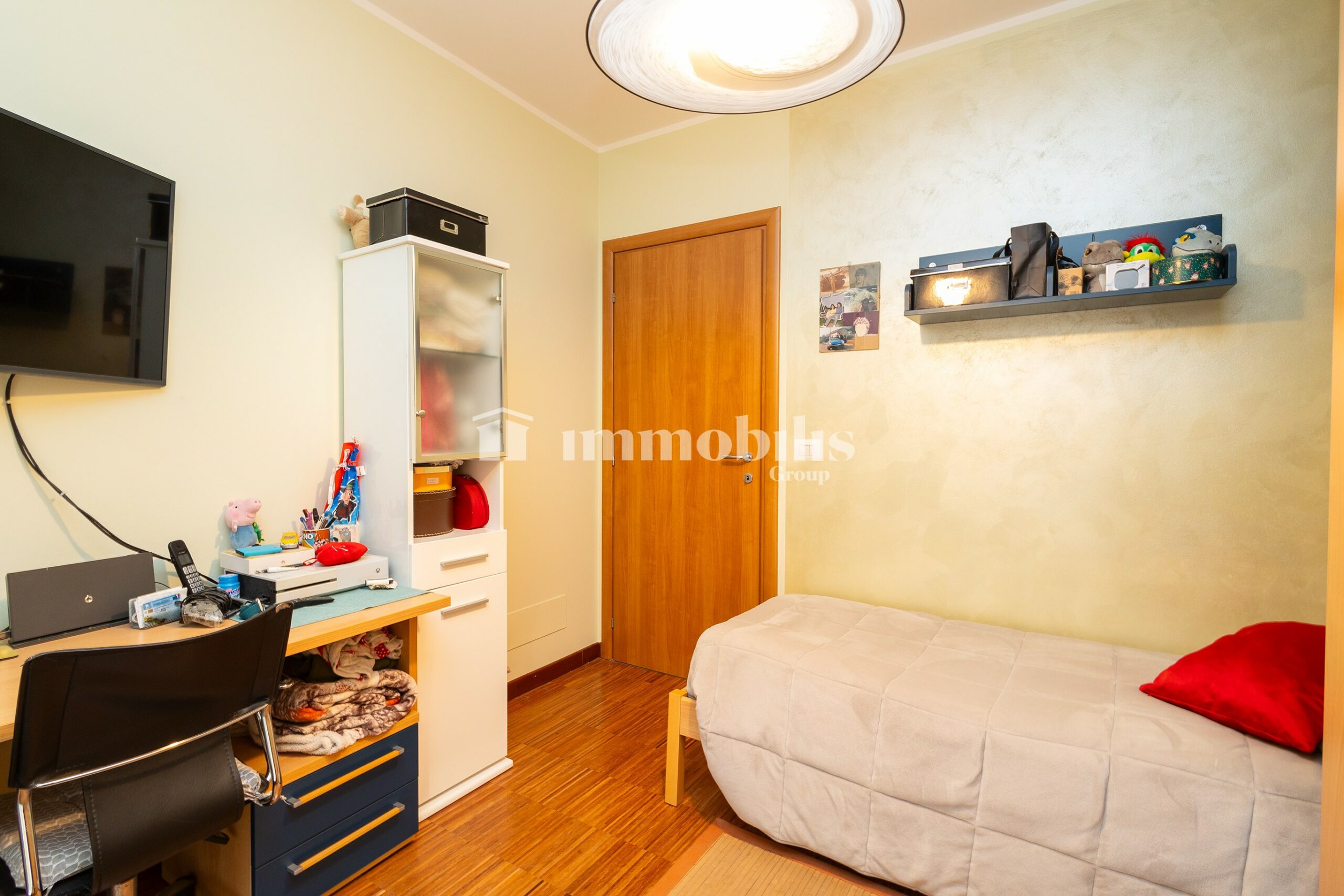 La camera da letto matrimoniale dispone di generose metrature in modo da poter ospitare letto a due piazze, ampia armadiatura e comò con specchiera. La seconda camera è luminosa e si presenta con letto singolo, armadio e scrivania. Il riscaldamento è centralizzato a pavimento regolabile con termostato interno. Aria condizionata. Box auto ad € 25.000