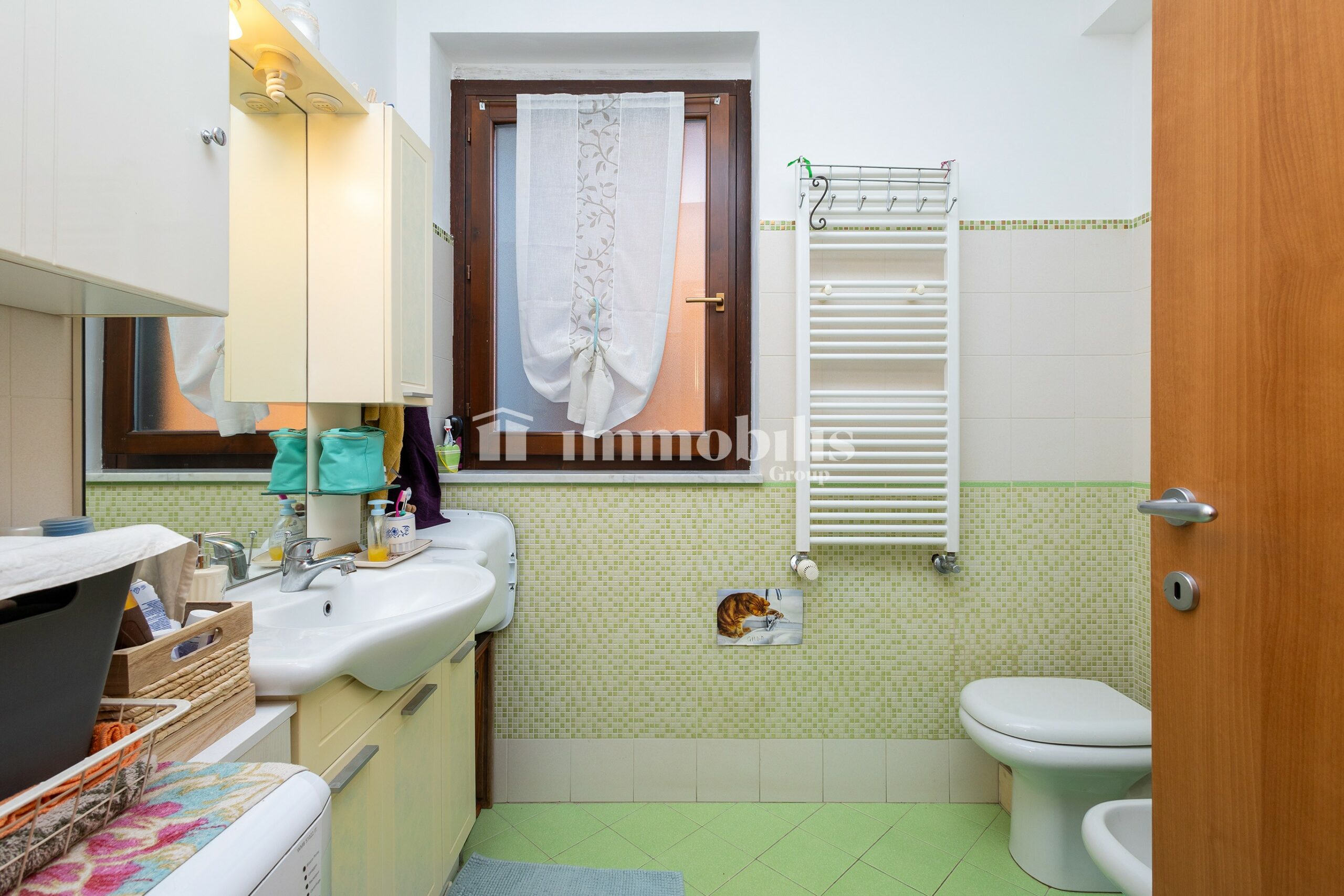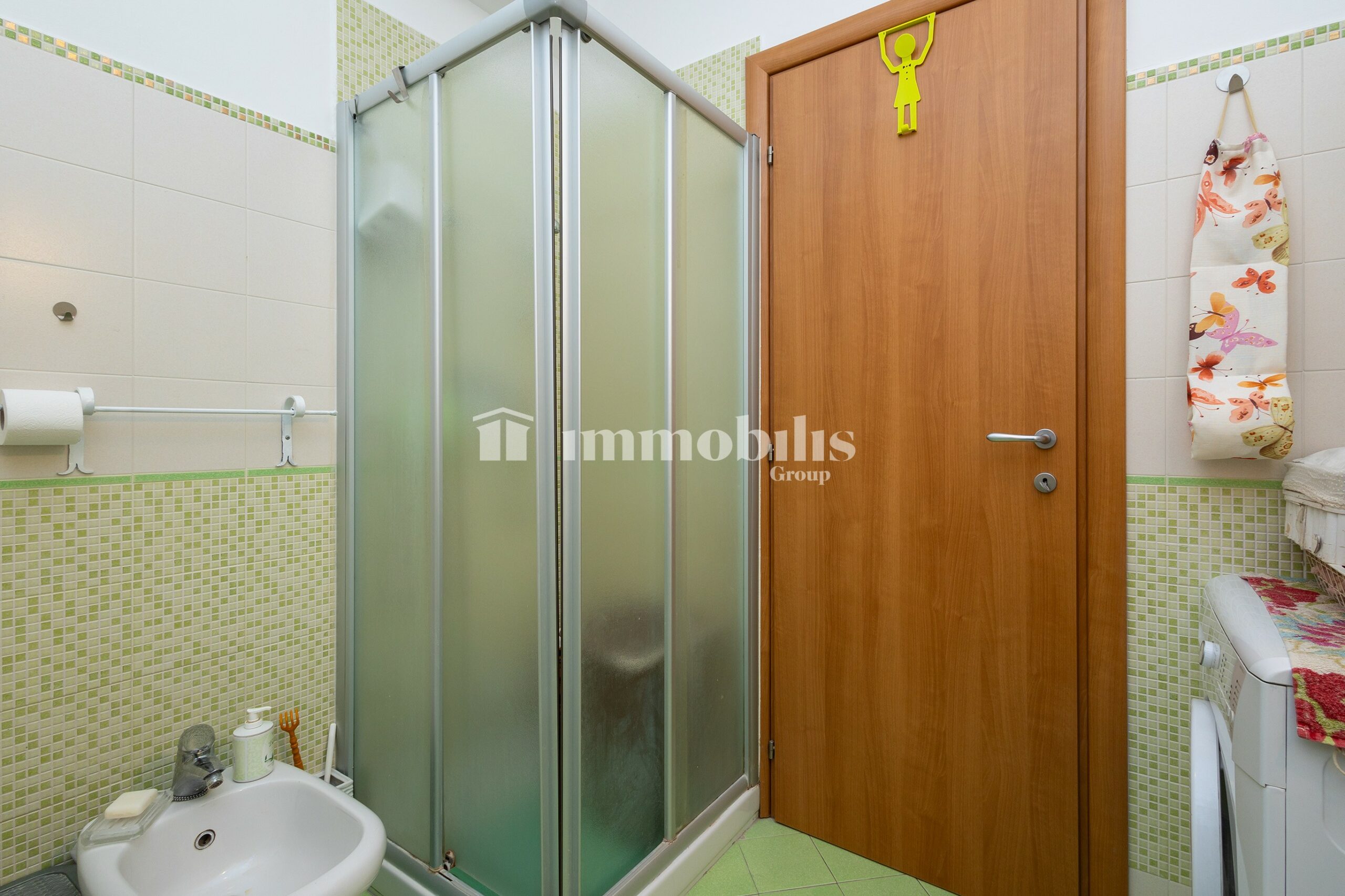 Il disimpegno ci accompagna alla zona notte. Il bagno è finestrato con un comodo box doccia angolare.