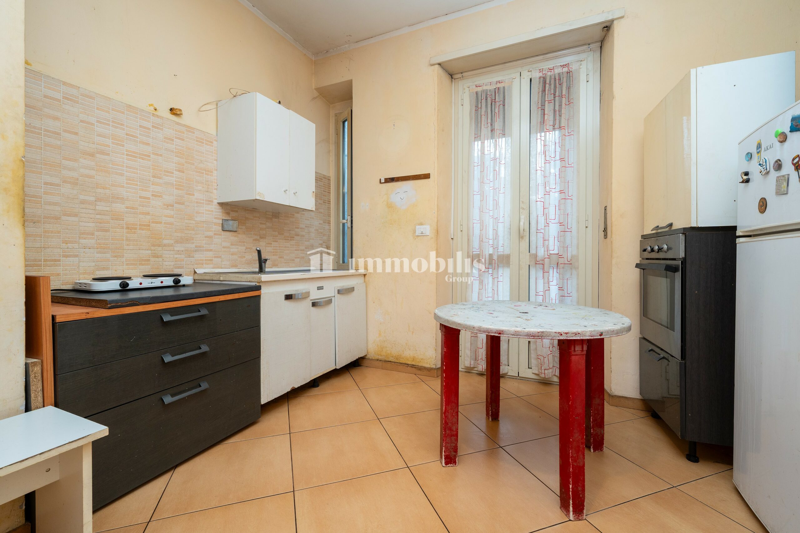 Bilocale in Via Venalzio 15, sito al piano rialzato di uno stabile degli anni ’60 di quattro piani totali.