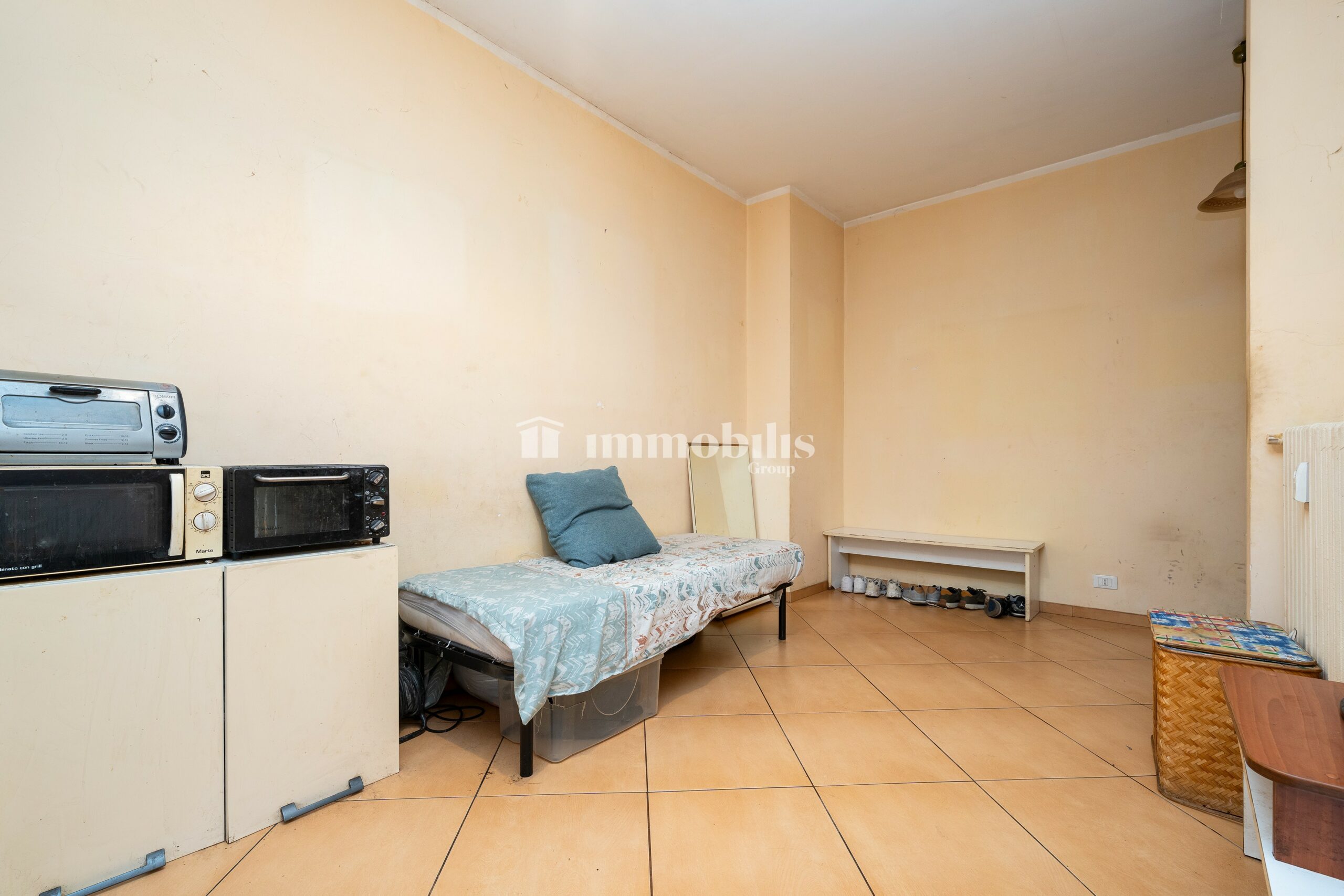 La camera da letto, di generosa metratura, risulta luminosa grazie all’affaccio esterno e consente un arredamento completo e versatile. Il bagno finestrato è dotato di box doccia e di tutti i servizi. Completa la proprietà un comodo ripostiglio, ideale come spazio extra per l’organizzazione della casa.