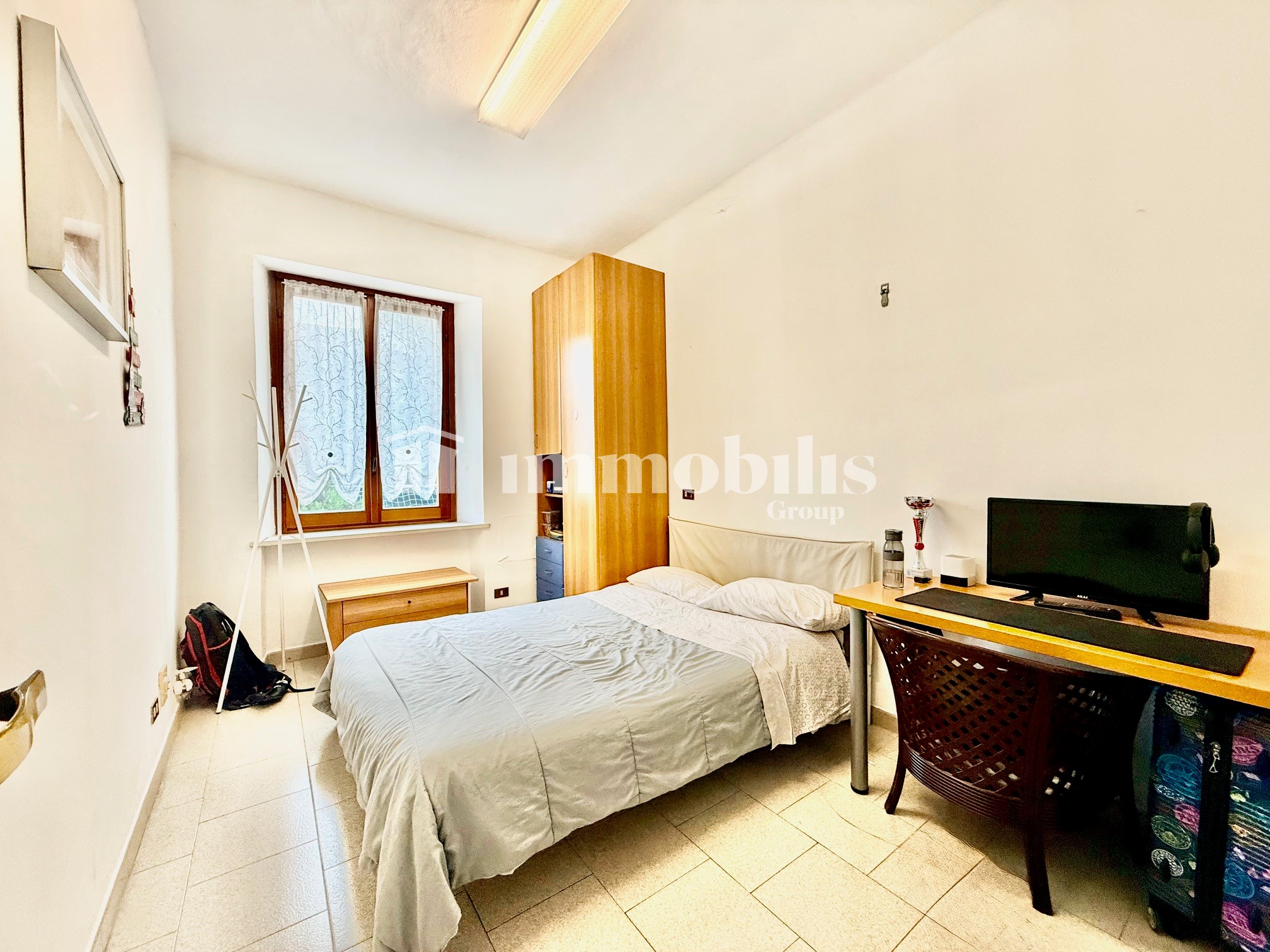 Soggiorno e cucina affacciano su un balcone, con accesso diretto al giardino privato di circa 300 mq, ideale per momenti di relax all’aperto, area giochi o pranzi in famiglia.