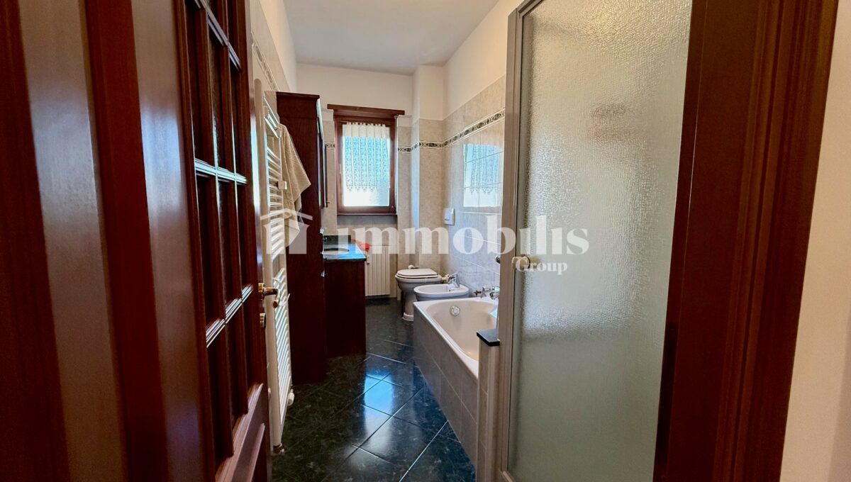 Il bagno ha la finestra e la comodità di disporre sia della vasca che del box doccia.