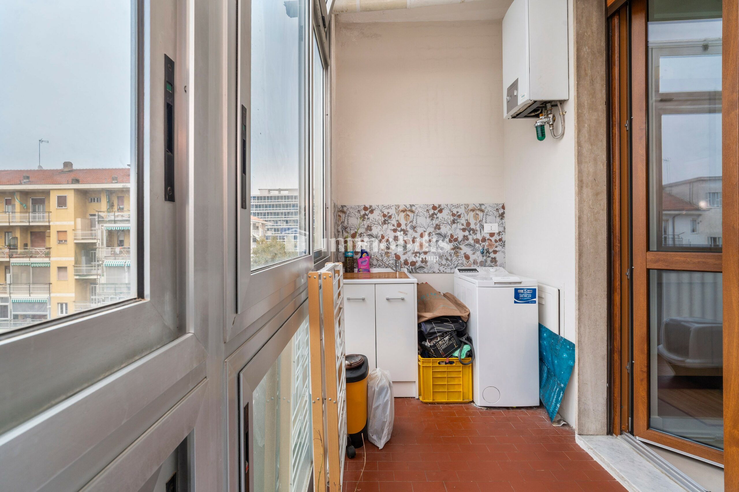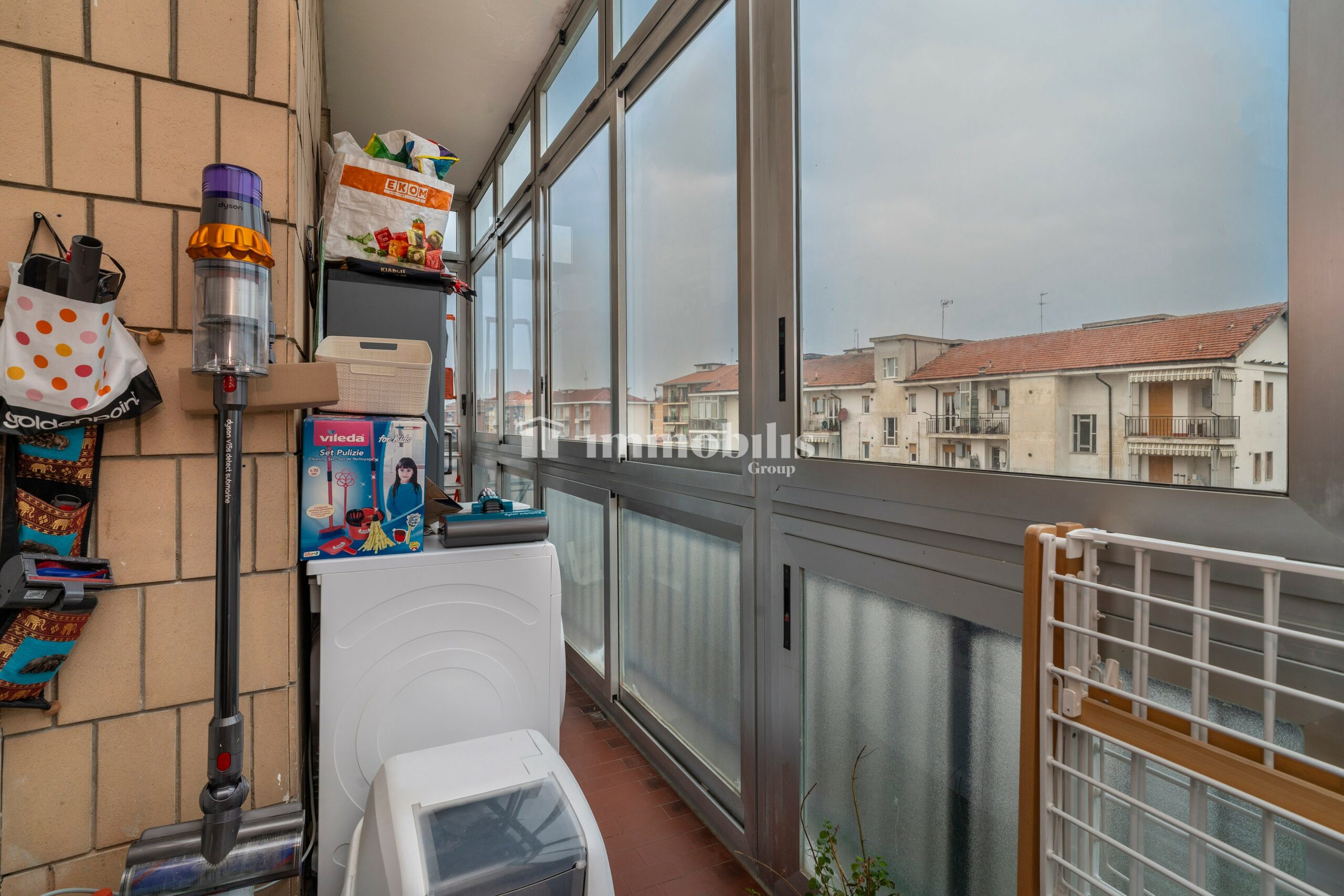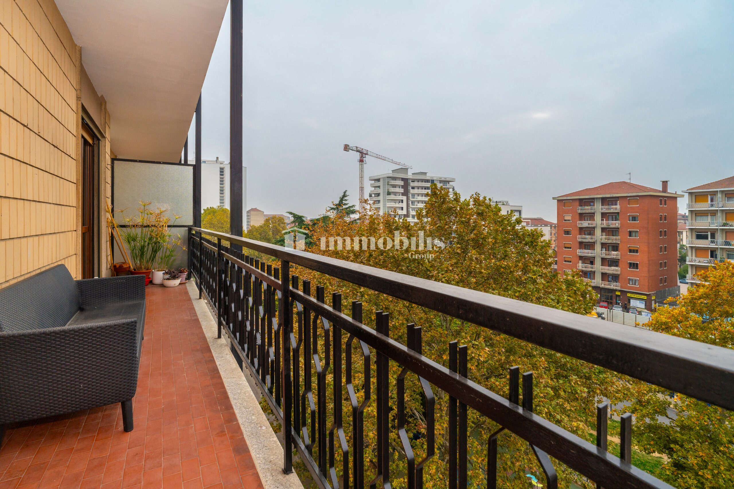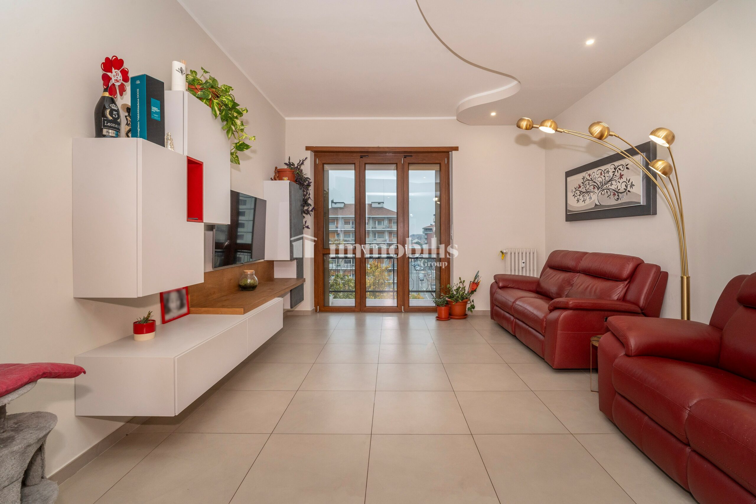 L’alloggio si apre su un ampio soggiorno molto luminoso, capace di accogliere due comodi divani e una parete attrezzata TV, con accesso a un balcone spazioso affacciato direttamente su Corso Francia. Il balcone è condiviso con una delle camere da letto, donando continuità e luce agli ambienti.