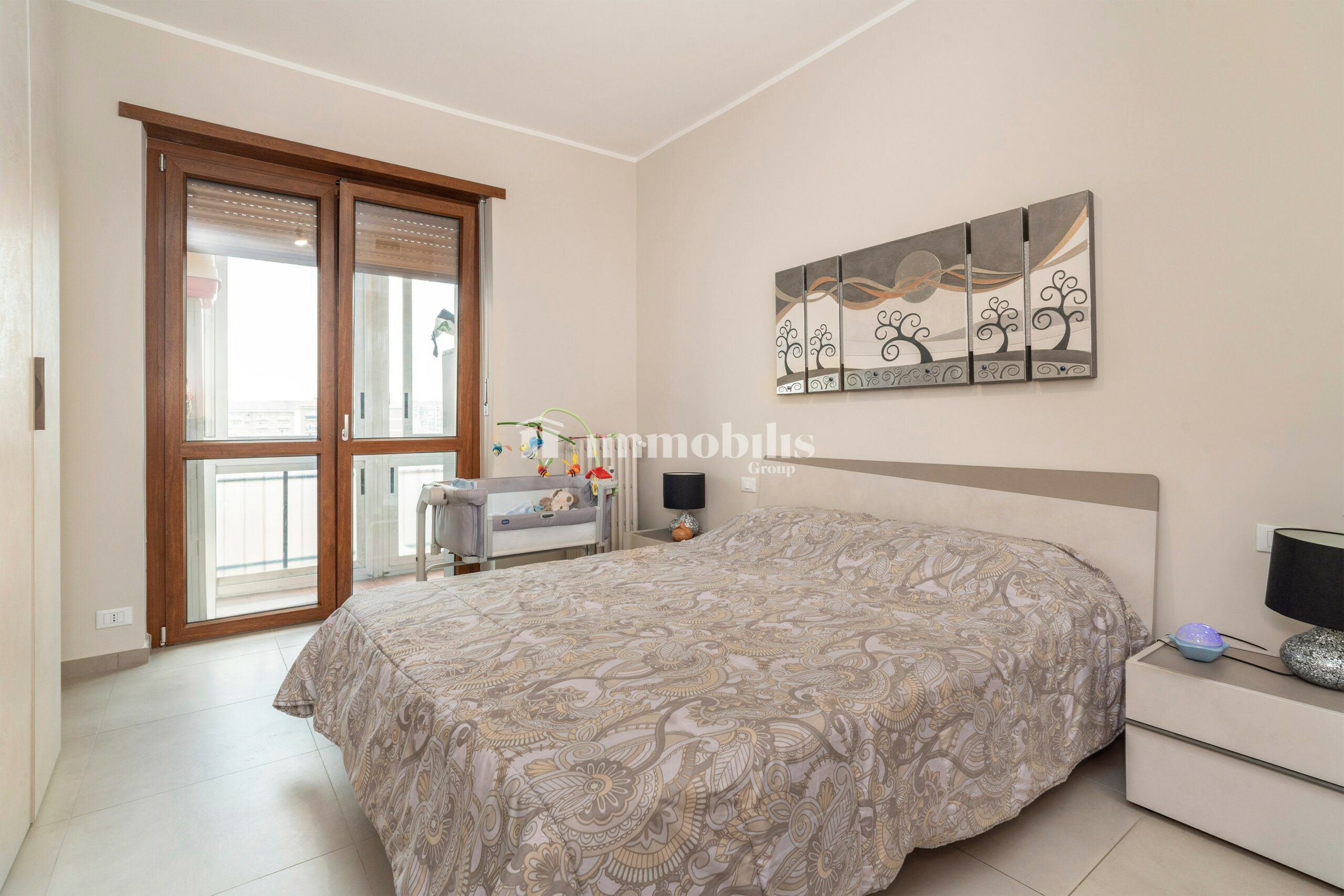 Dal soggiorno, un comodo disimpegno conduce alla zona notte, composta da due camere da letto matrimoniali, entrambe di generosa metratura e con accesso ai balconi. Ideali per famiglie, coppie o per chi desidera una stanza in più da adibire a studio o camera per gli ospiti.