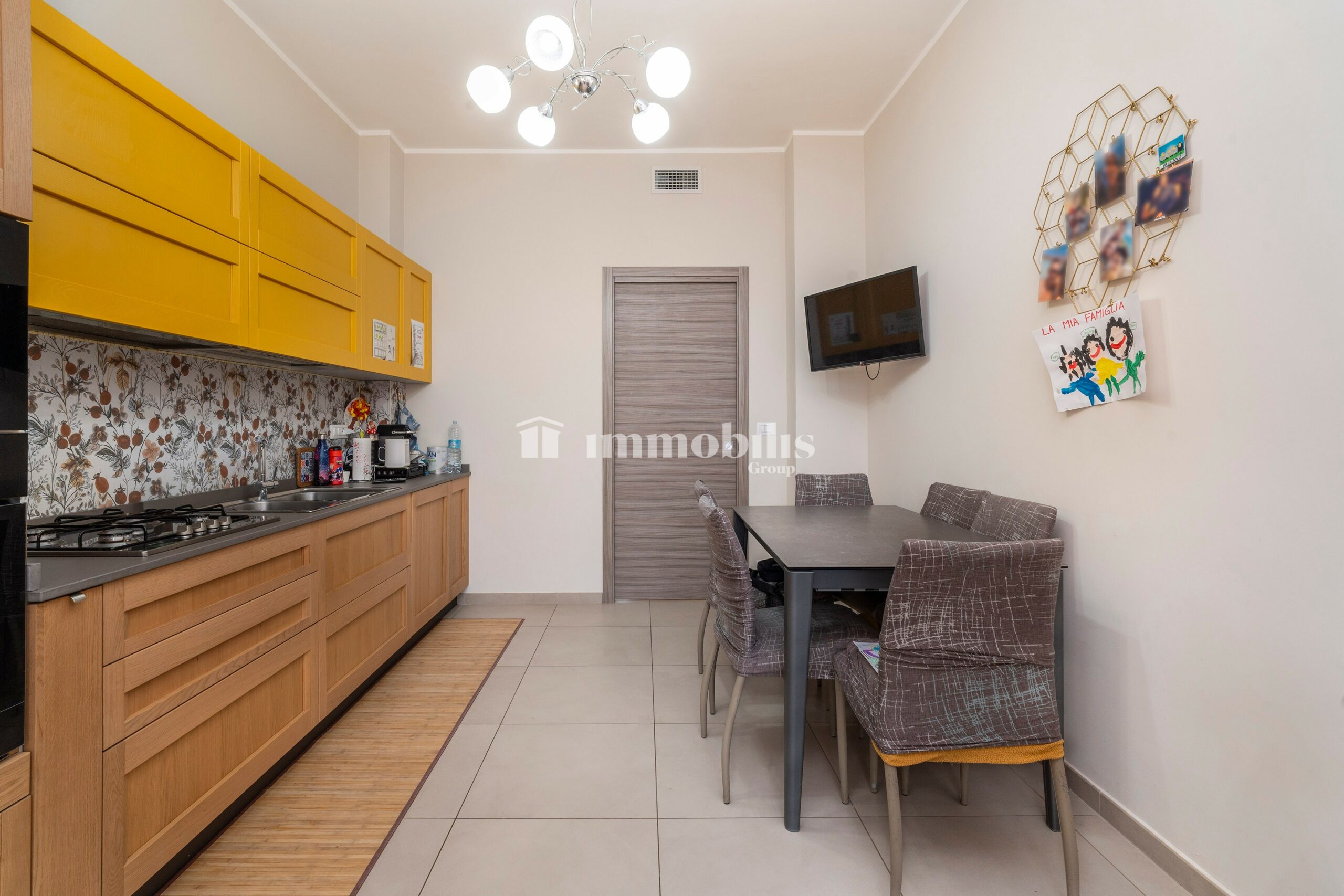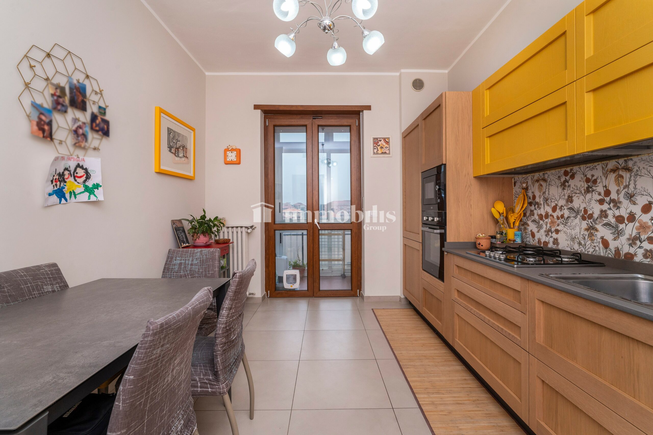 La cucina è abitabile, dotata di una funzionale cucina lineare e con accesso a un secondo balcone che affaccia sull’interno cortile, offrendo uno sfogo più riservato.