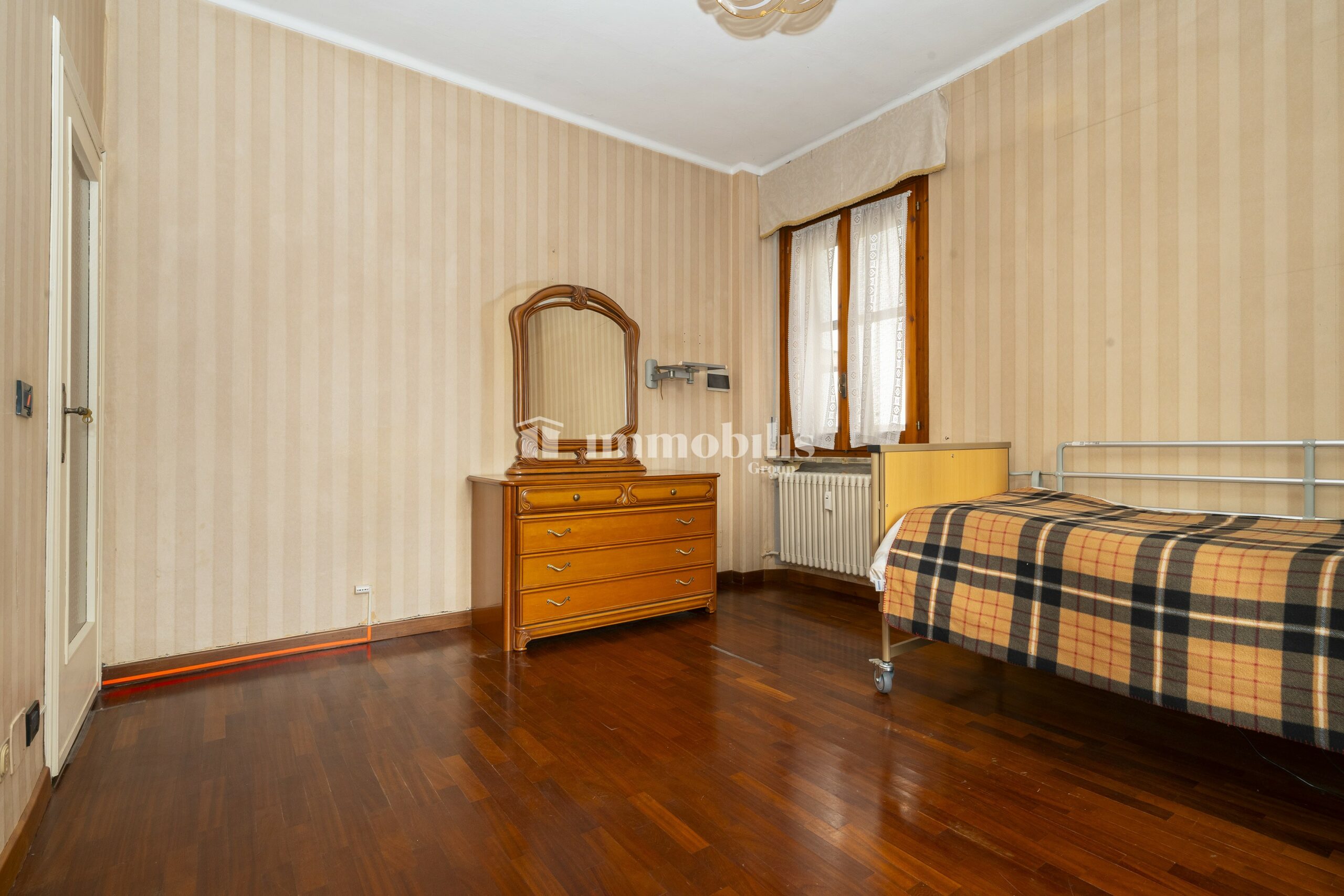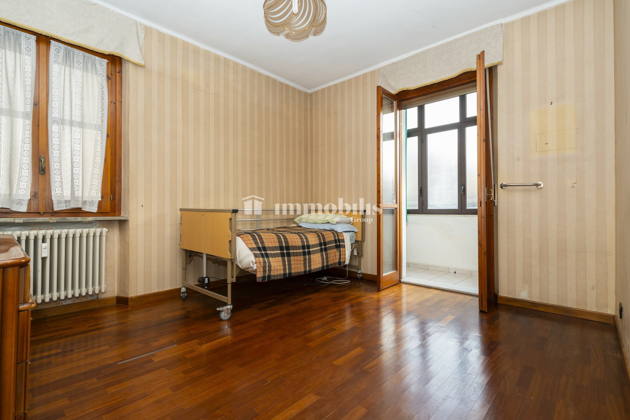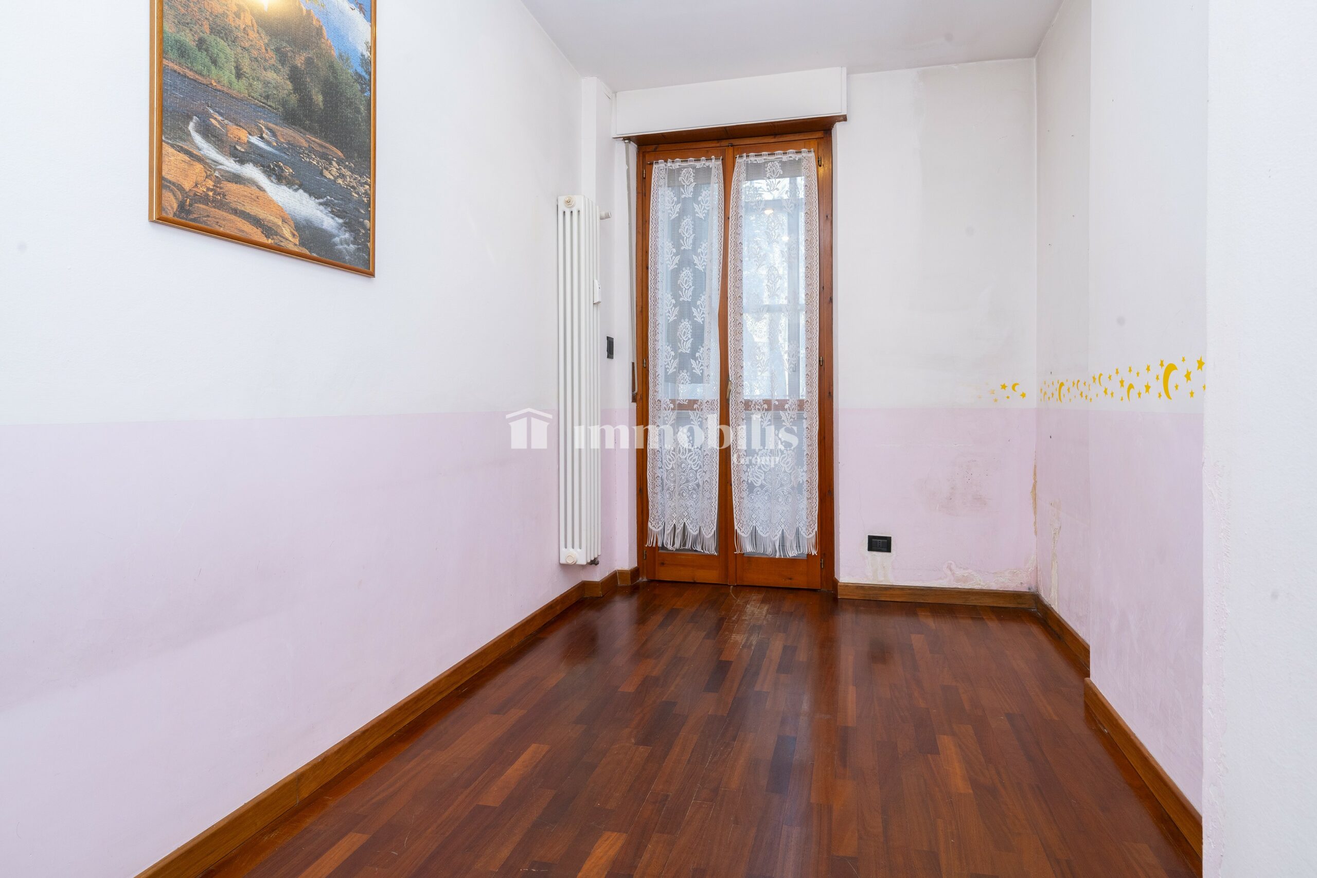 La camera matrimoniale è spaziosa, la cameretta è molto luminosa ed è collegata al balcone.