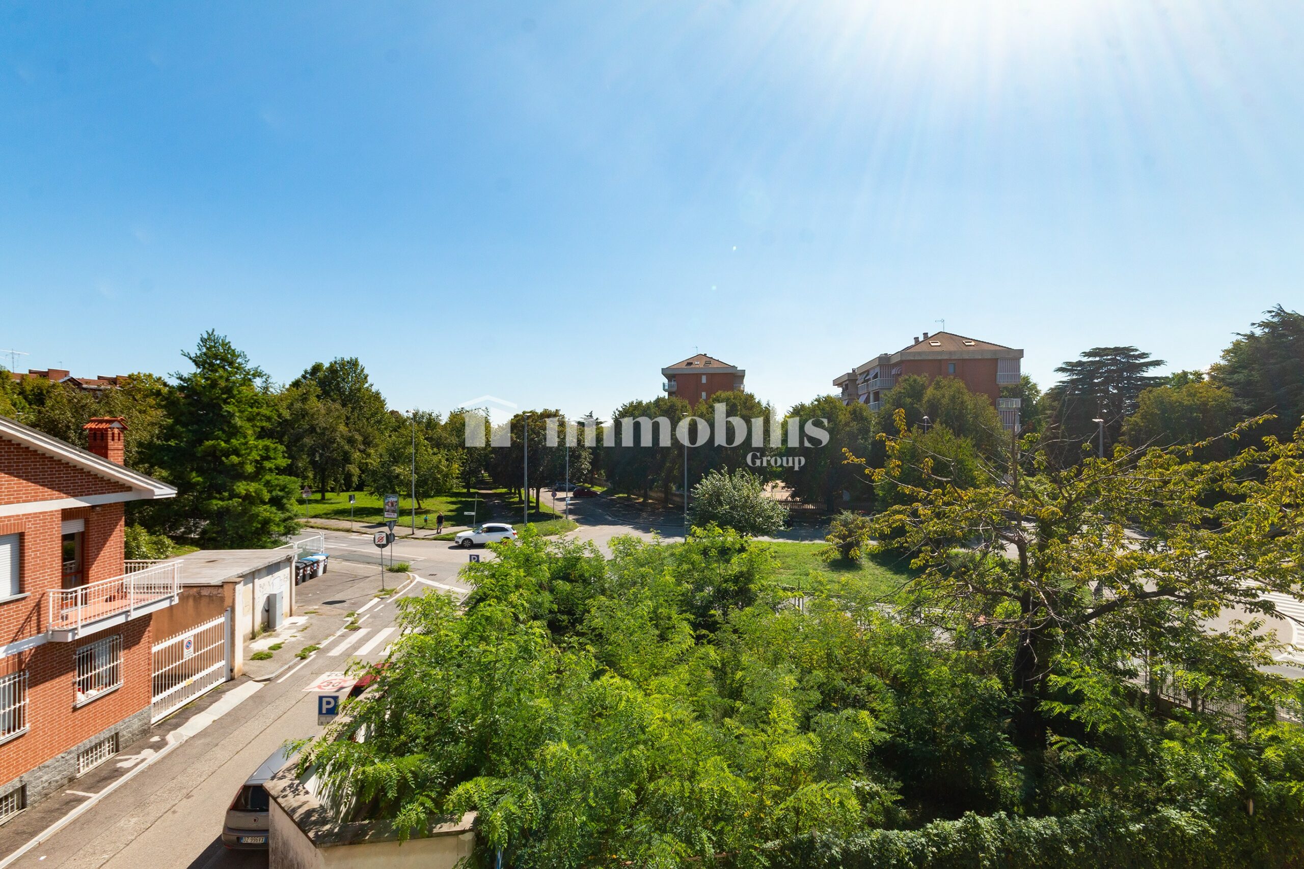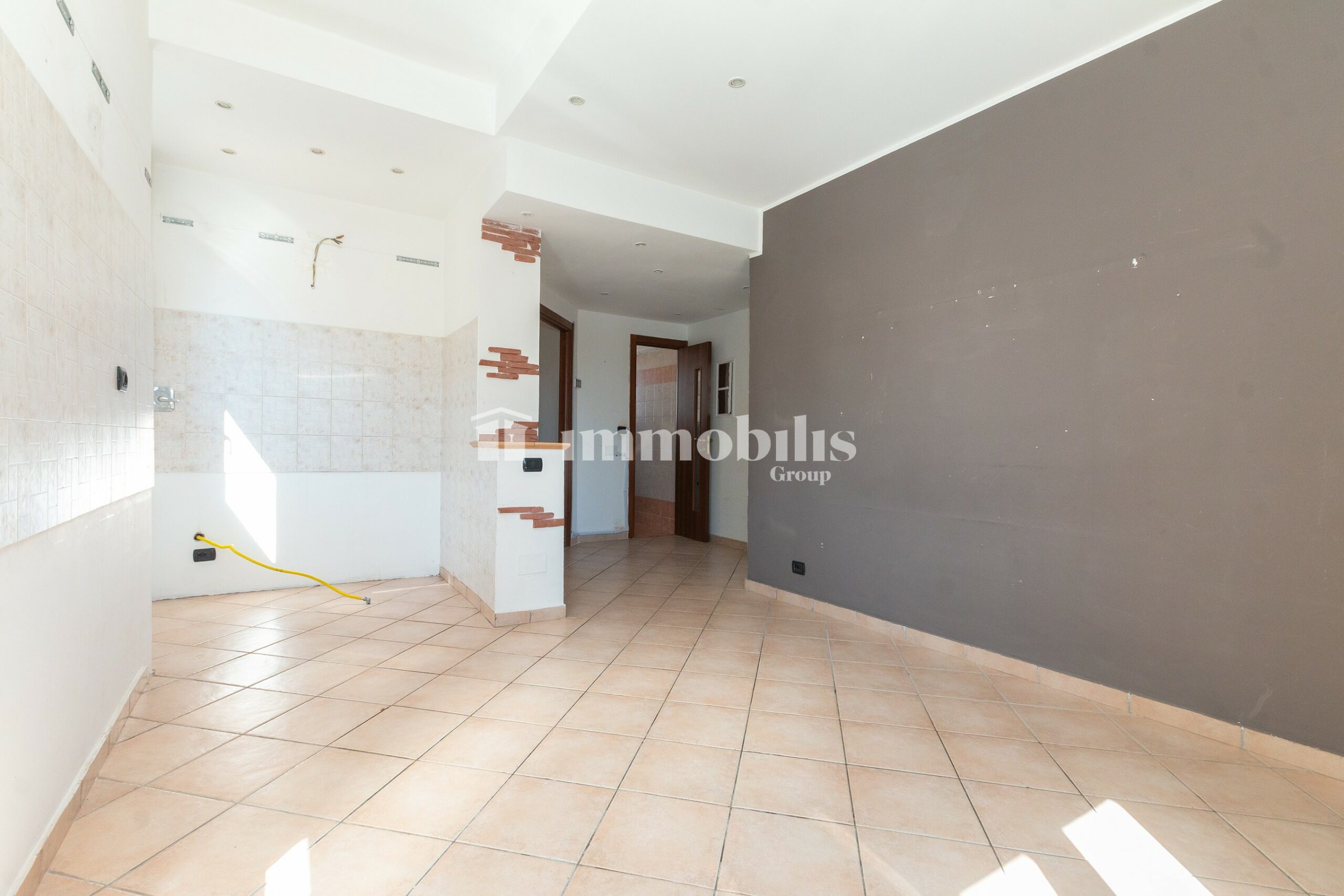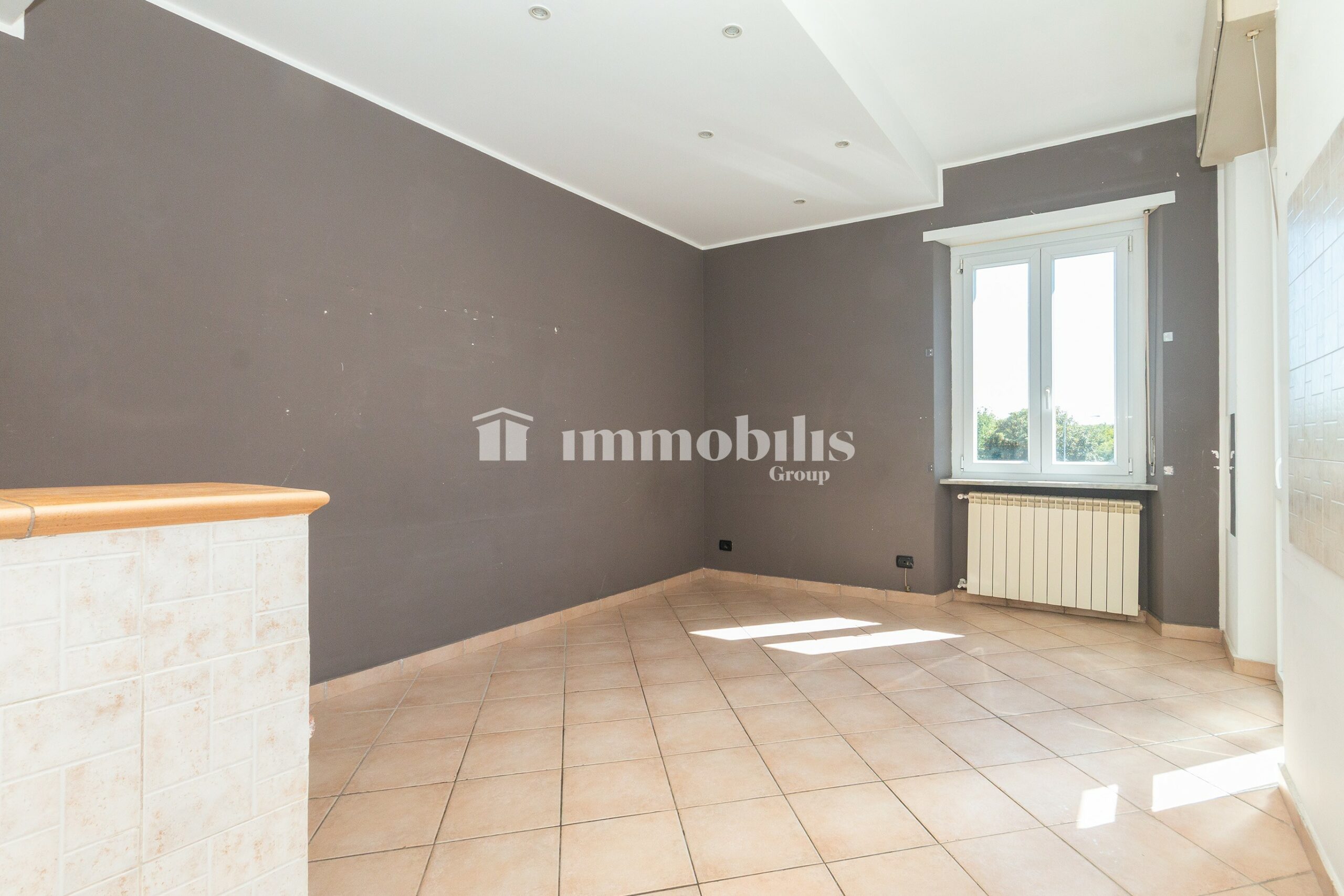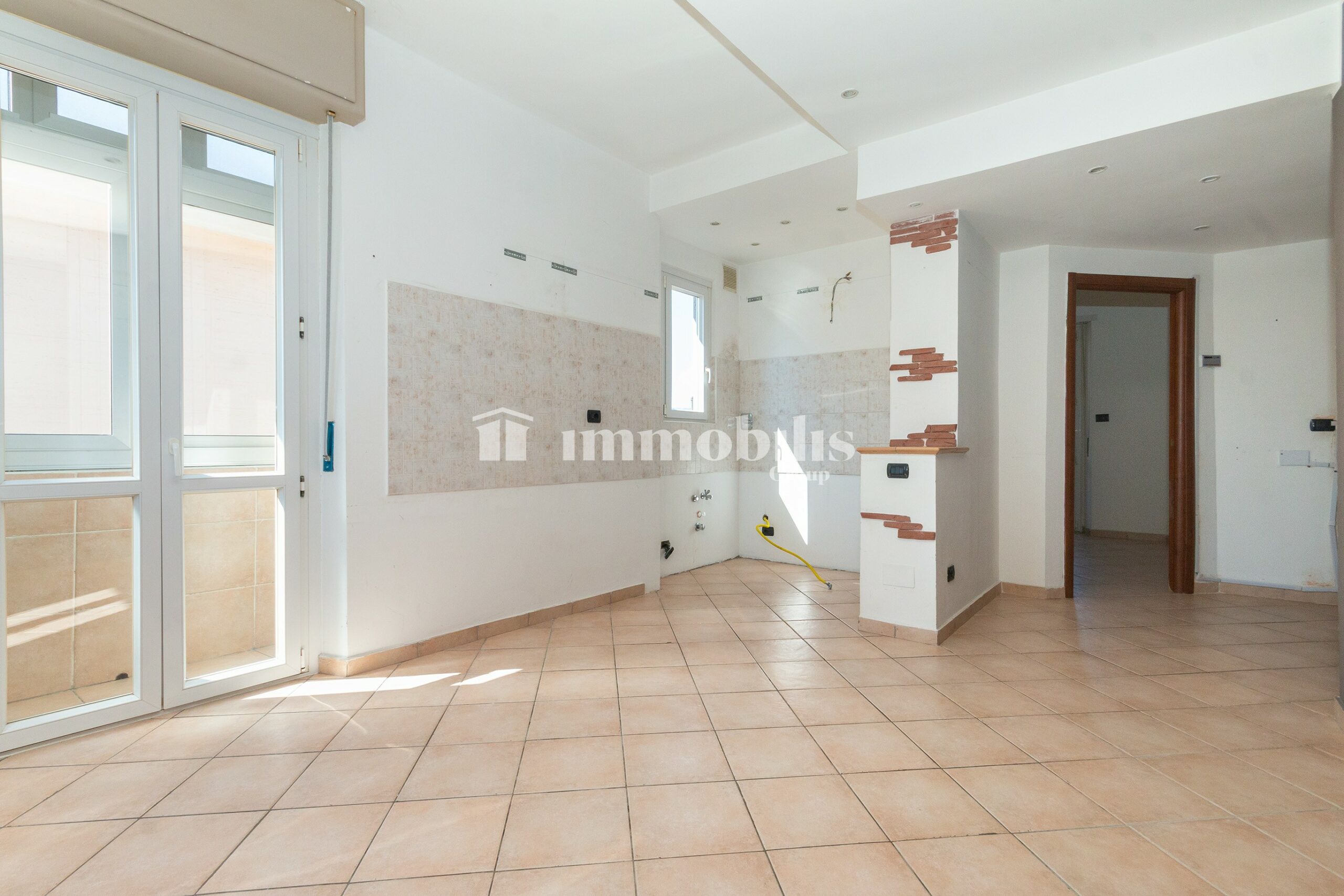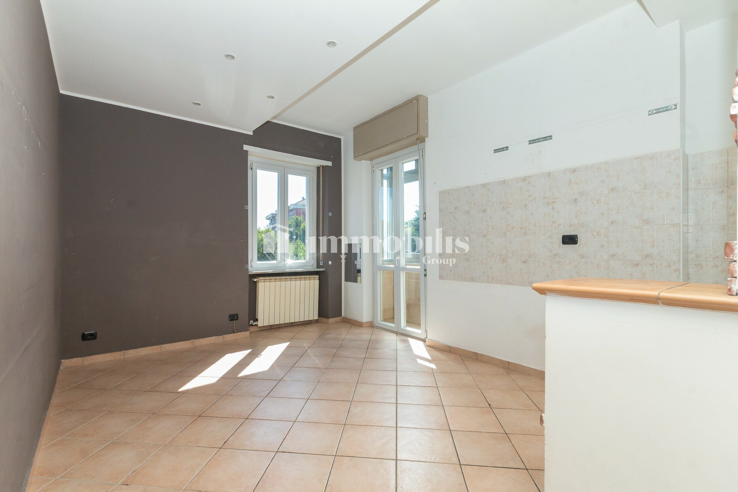 La zona giorno è composta da un ampio tinello con cucinotto a vista, privo di muri divisori, che crea un ambiente conviviale e ben sfruttabile. L’intera area è molto luminosa, grazie alla presenza di tre finestre, tra cui un piccolo balcone verandato.