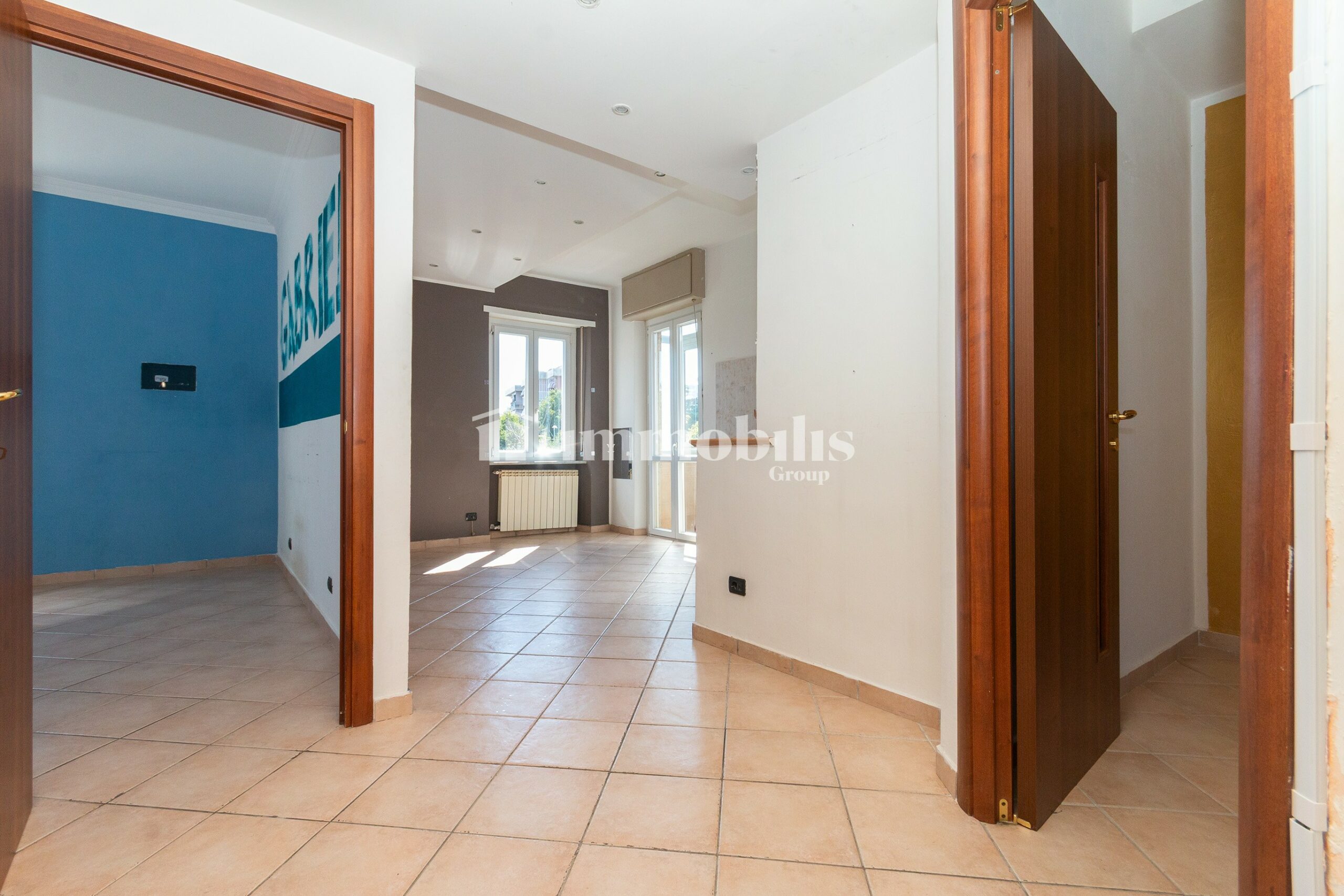 L’alloggio si apre su un ingresso con porta blindata che conduce a un disimpegno centrale, da cui si accede ai vari ambienti.