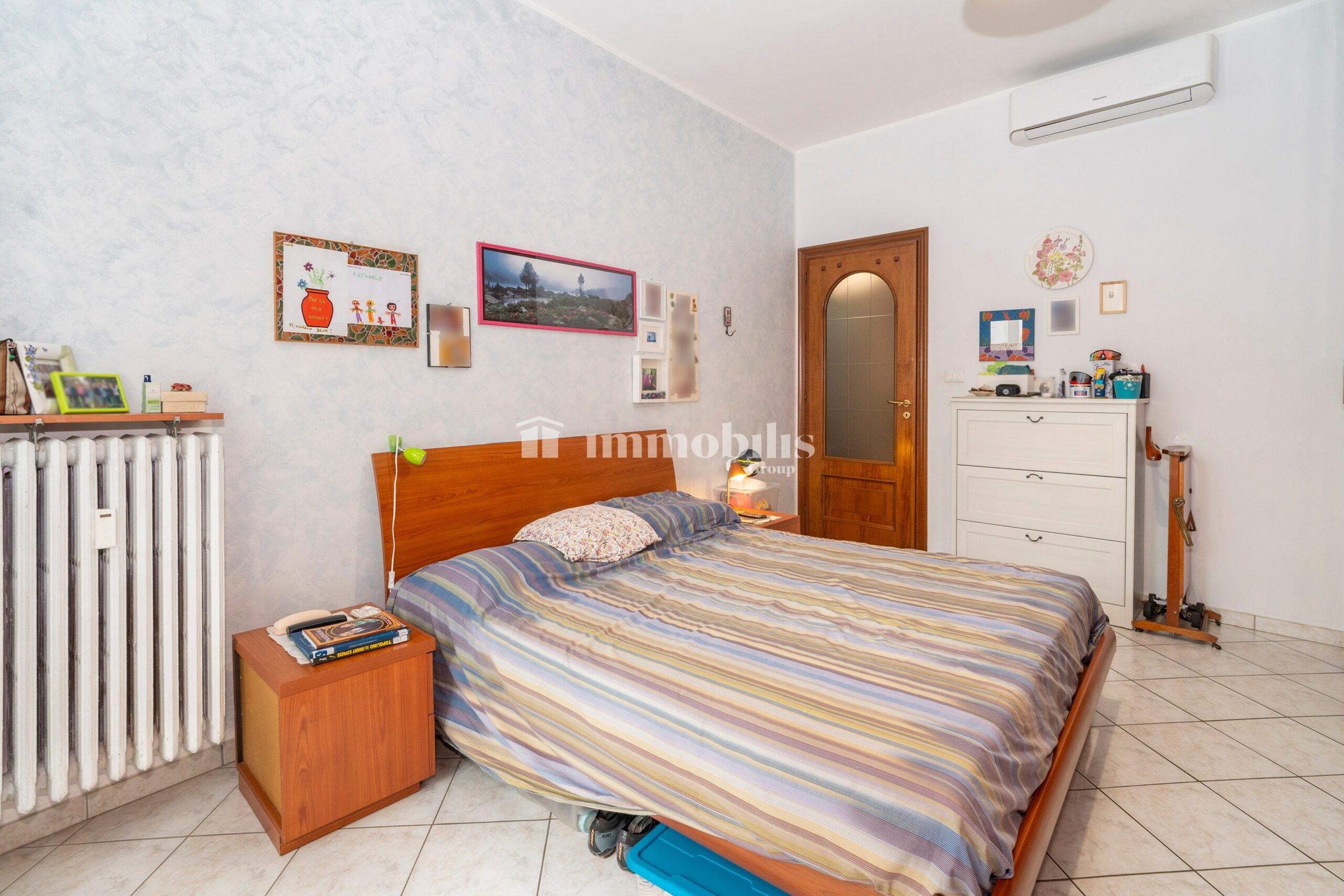 La camera da letto matrimoniale, ampia e luminosa, affaccia direttamente su Via Donizetti tramite un balcone, e gode di una piacevole esposizione.