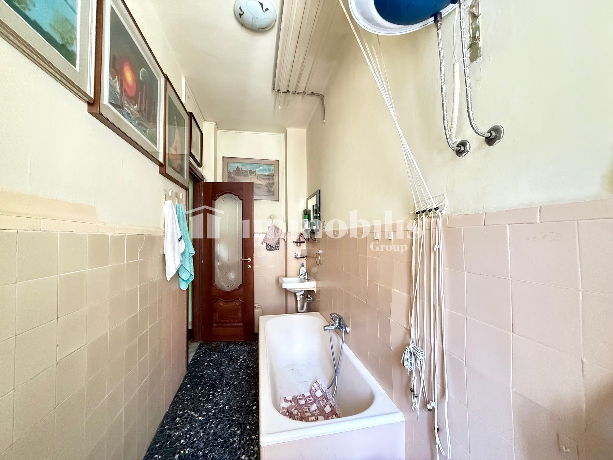 Il bagno è finestrato con attacco per la lavatrice interno e attualmente la vasca ed il boiler elettrico per l’acqua calda.