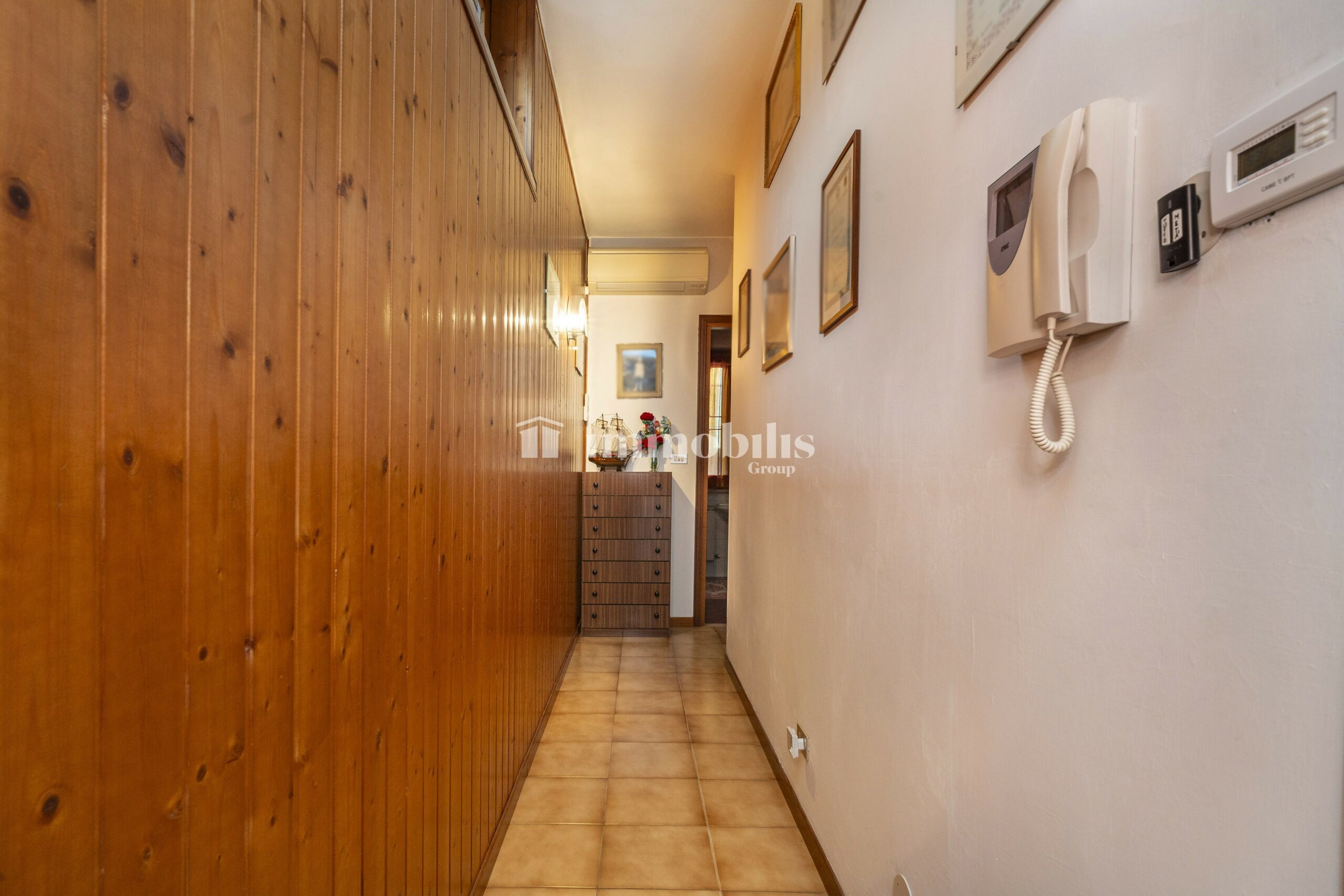 Proseguendo dalla zona giorno, si accede a un disimpegno che distribuisce in modo funzionale gli ambienti accessori della casa.