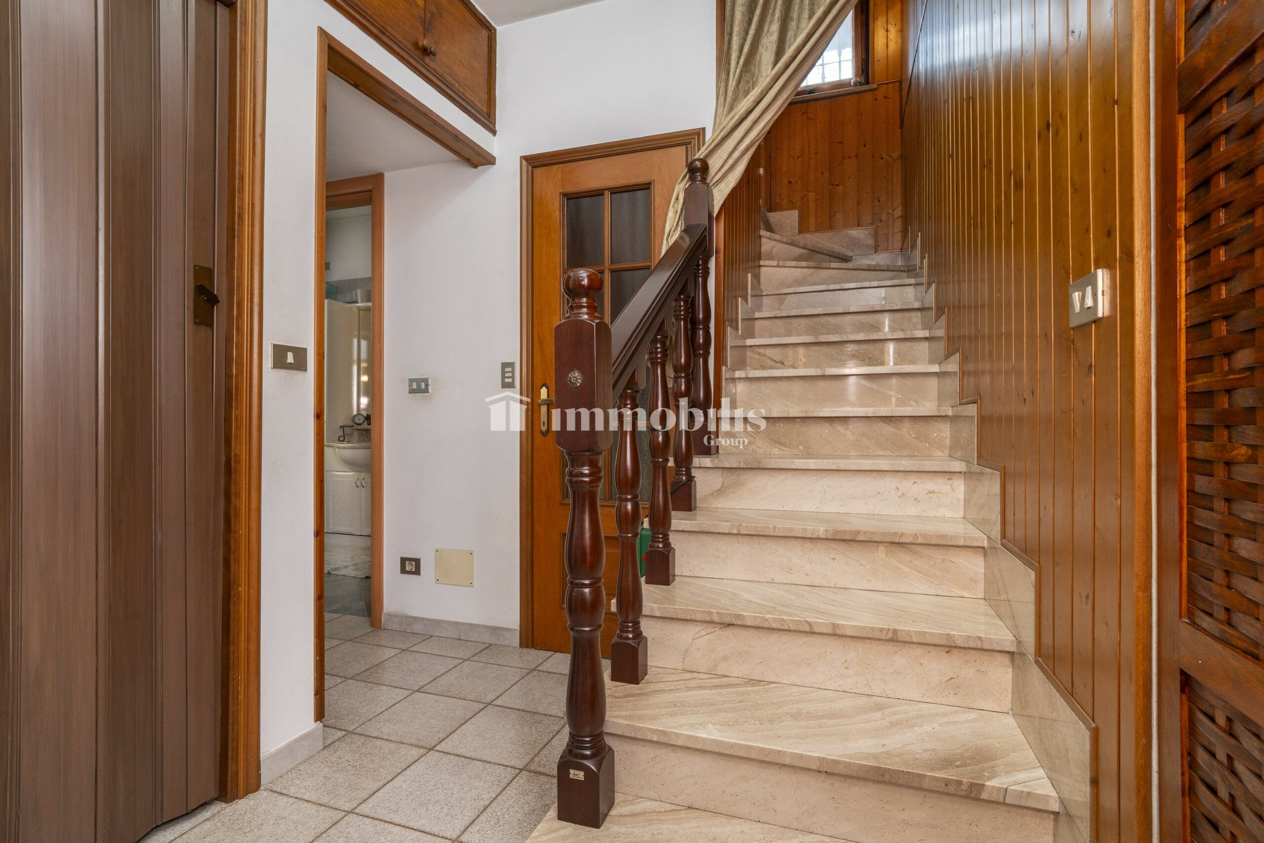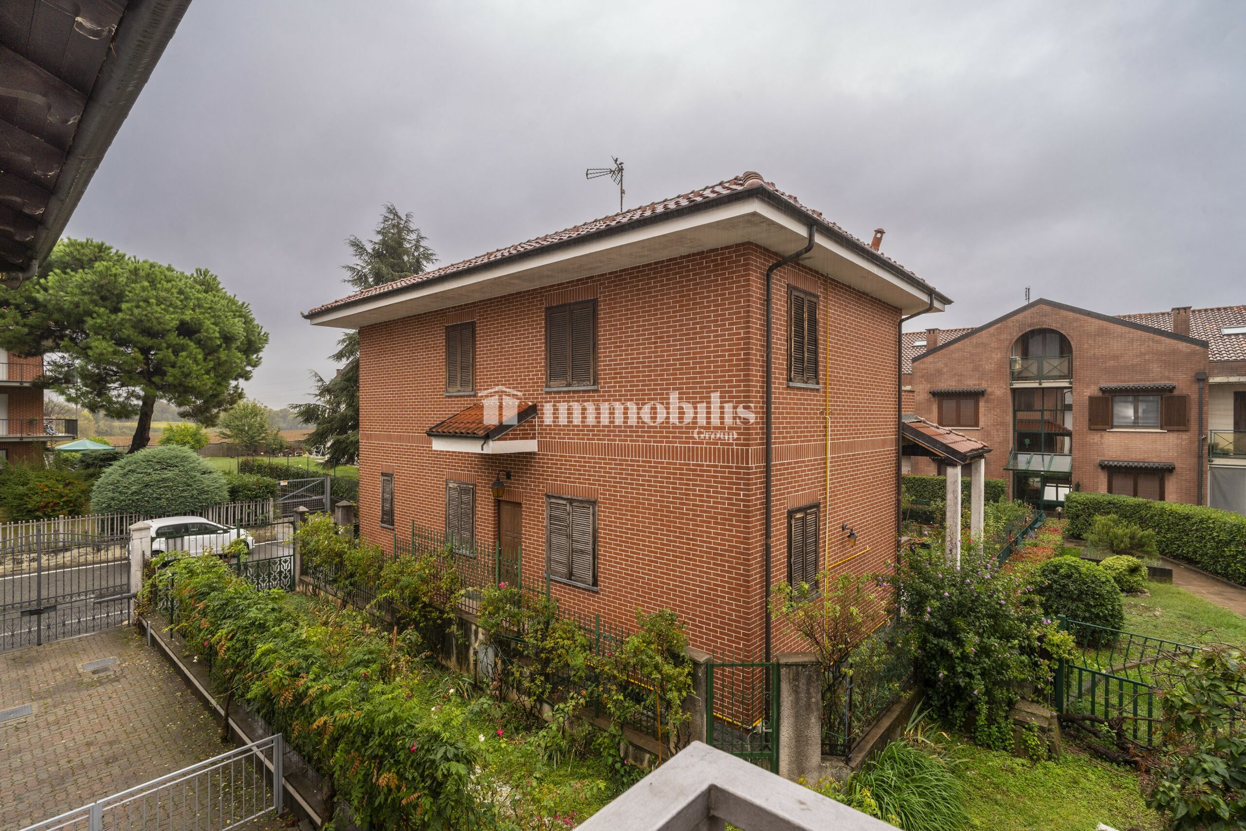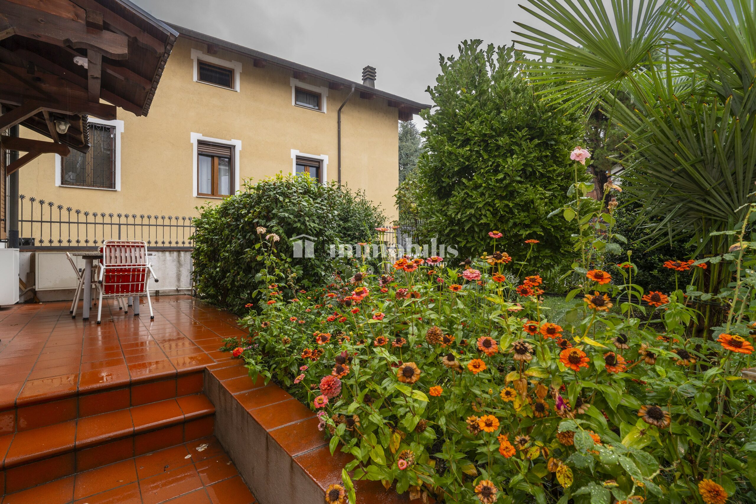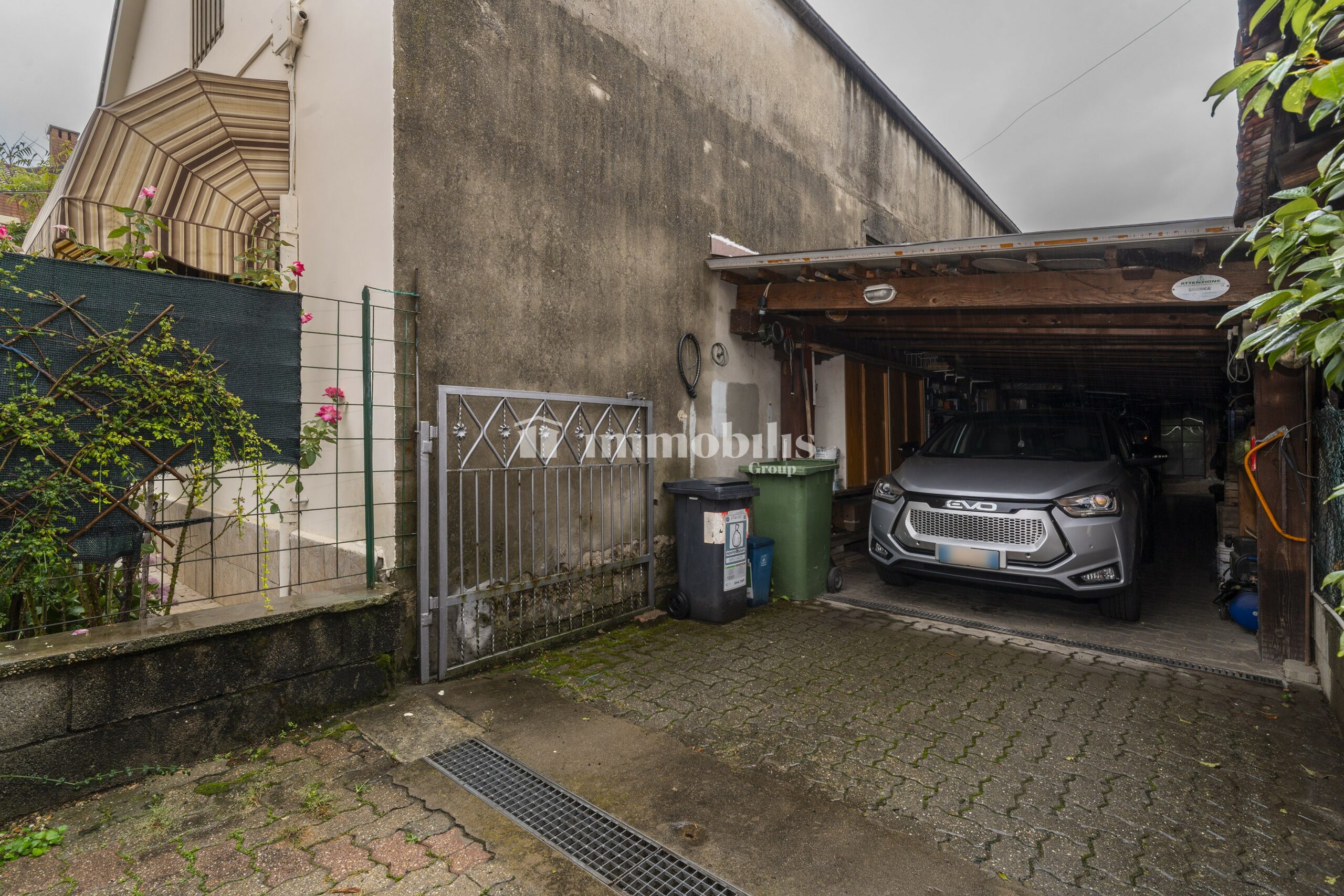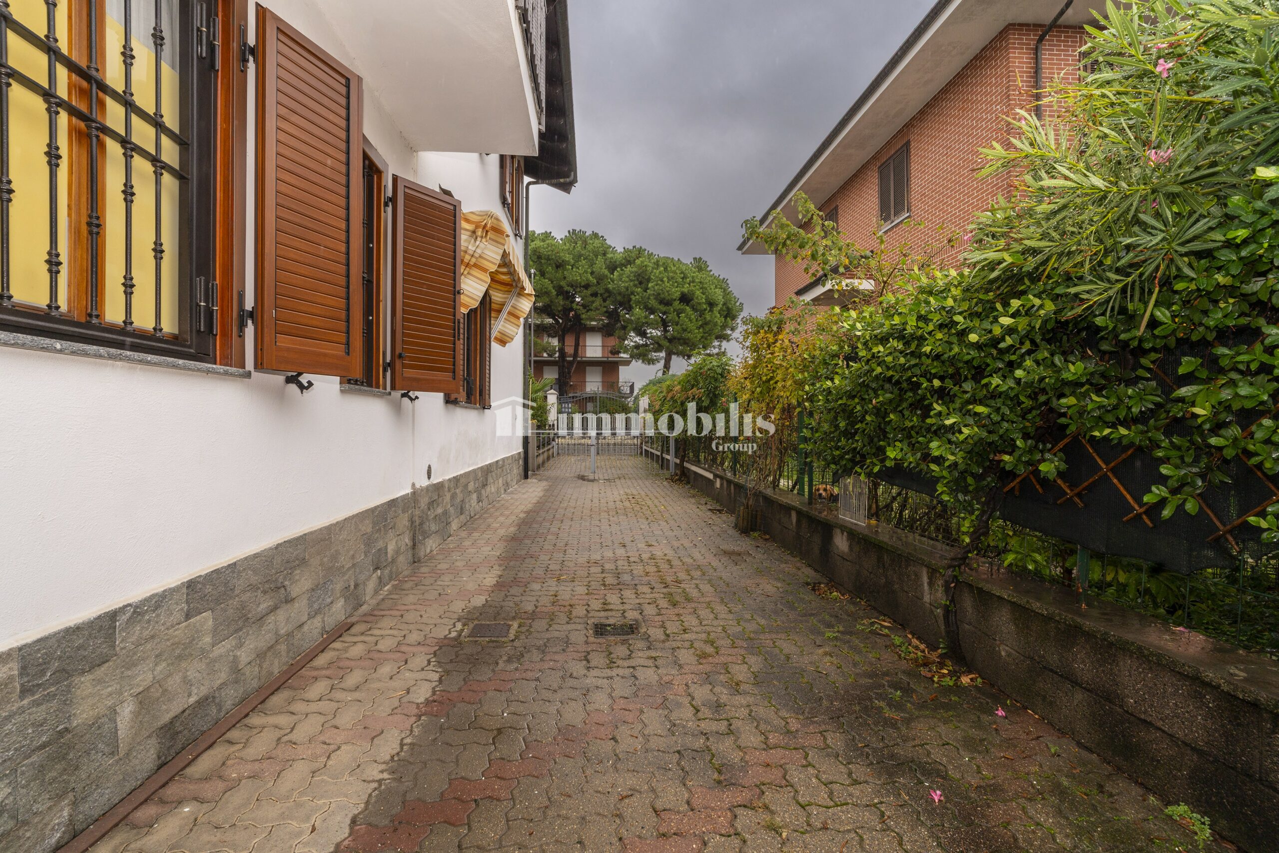 L’accesso alla proprietà avviene tramite cancello elettrico, che si apre su un cortile privato con giardino annesso: uno spazio verde curato, perfetto per godersi momenti all’aperto in tutta tranquillità. Dal giardino si raggiunge l’ingresso principale della casa.