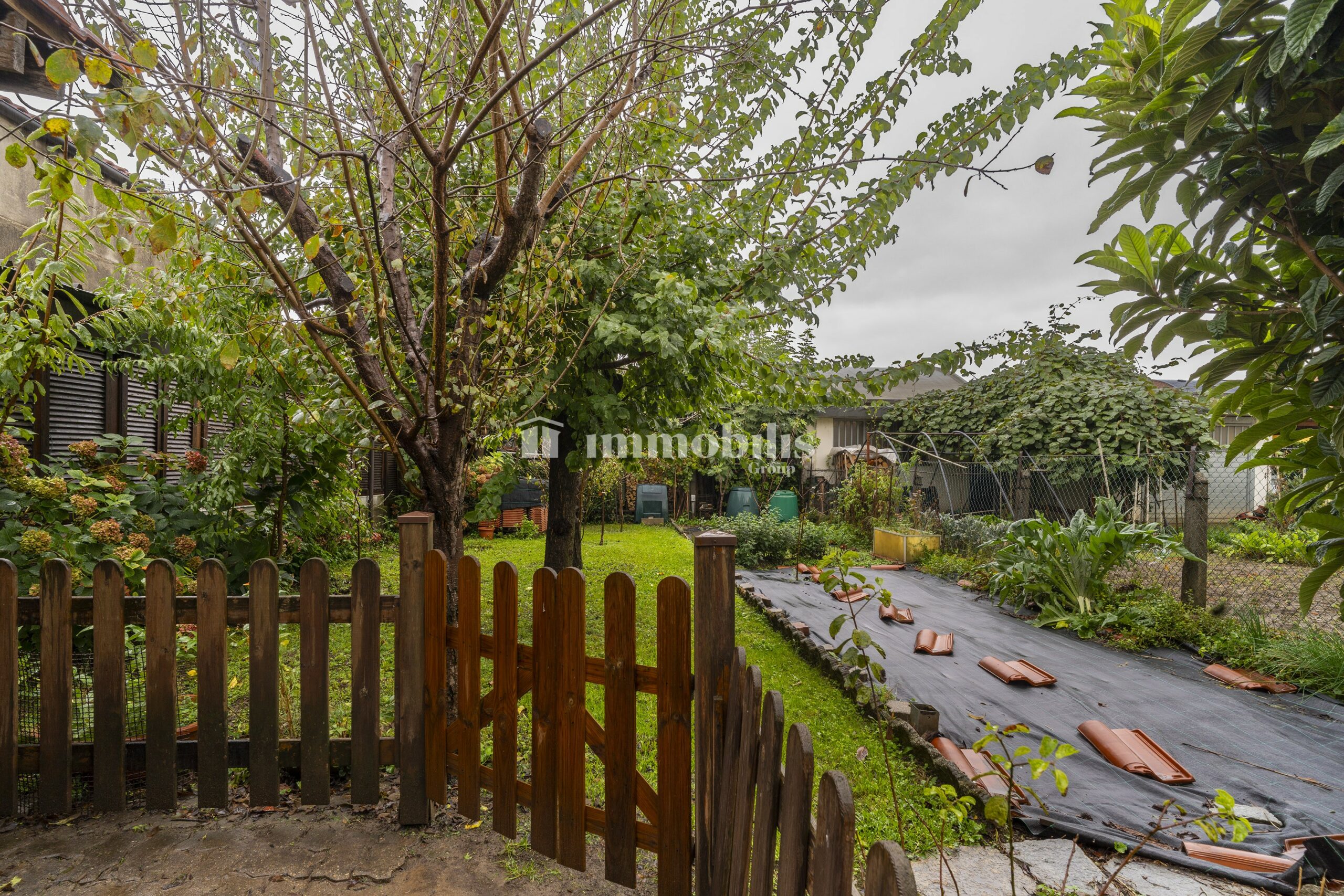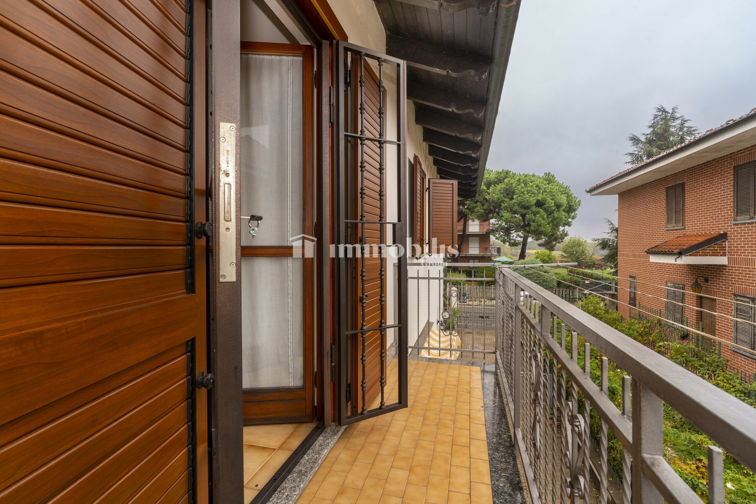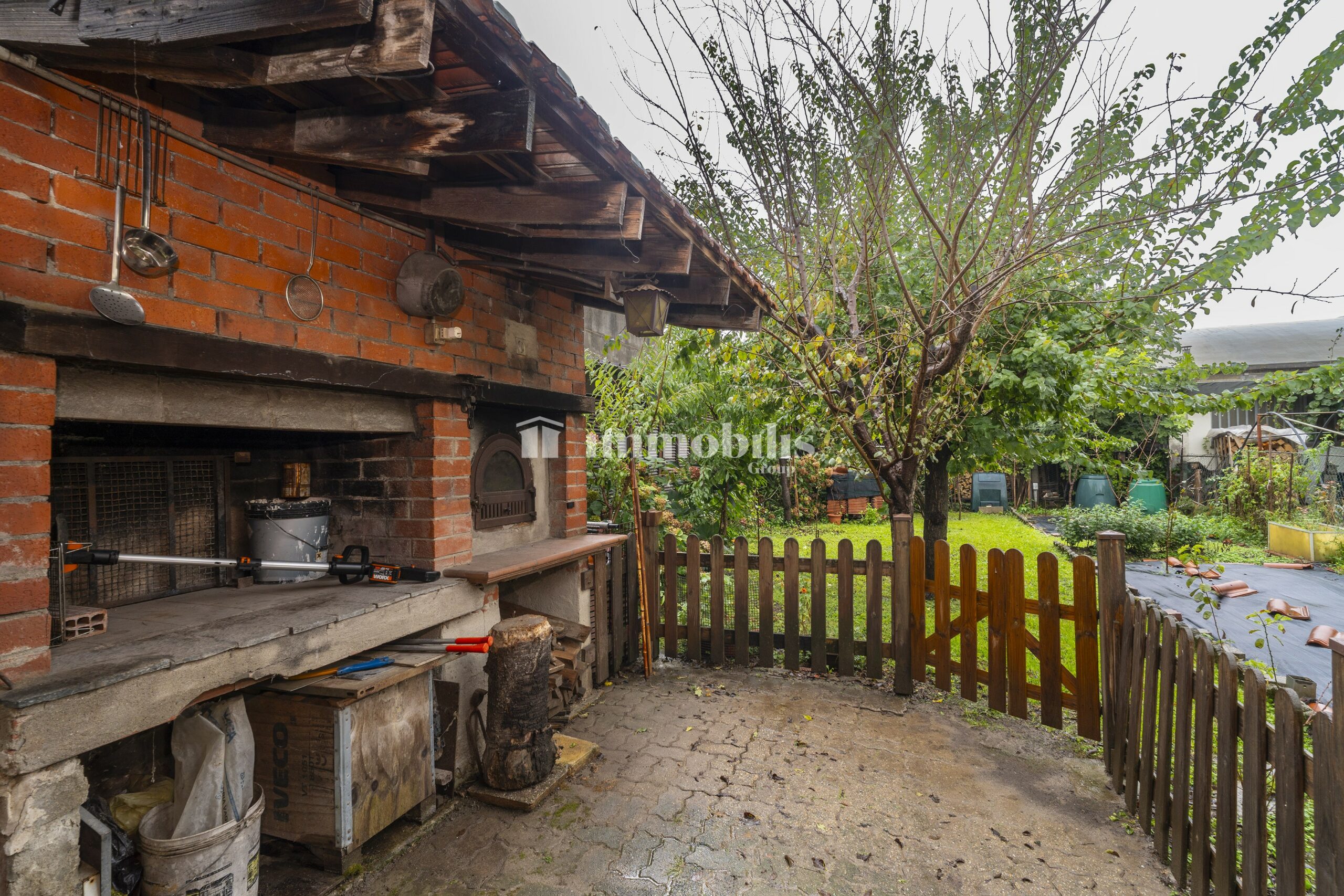 Dal disimpegno, una porta conduce all’esterno, dove ci accoglie un secondo spazio, coperto da una tettoia, che affaccia sul giardino privato sul retro. Questo angolo, riservato e silenzioso, è perfetto per momenti di relax, cene all’aperto o semplicemente per godersi un po’ di verde in totale privacy.