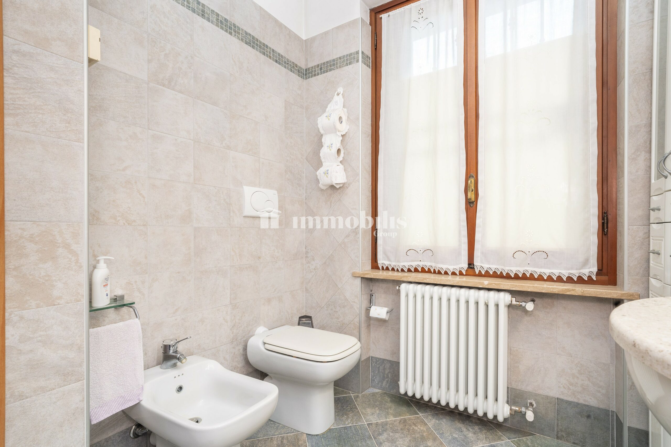 Adiacente si trova un bagno finestrato con box doccia, moderno e pratico, ideale per servire la zona giorno e gli ospiti. Completa la zona un’ampia stanza lavanderia, anch’essa con finestra, che offre tutto lo spazio necessario per lavatrice oltre a due ripostigli molto comodi per organizzare al meglio la casa.