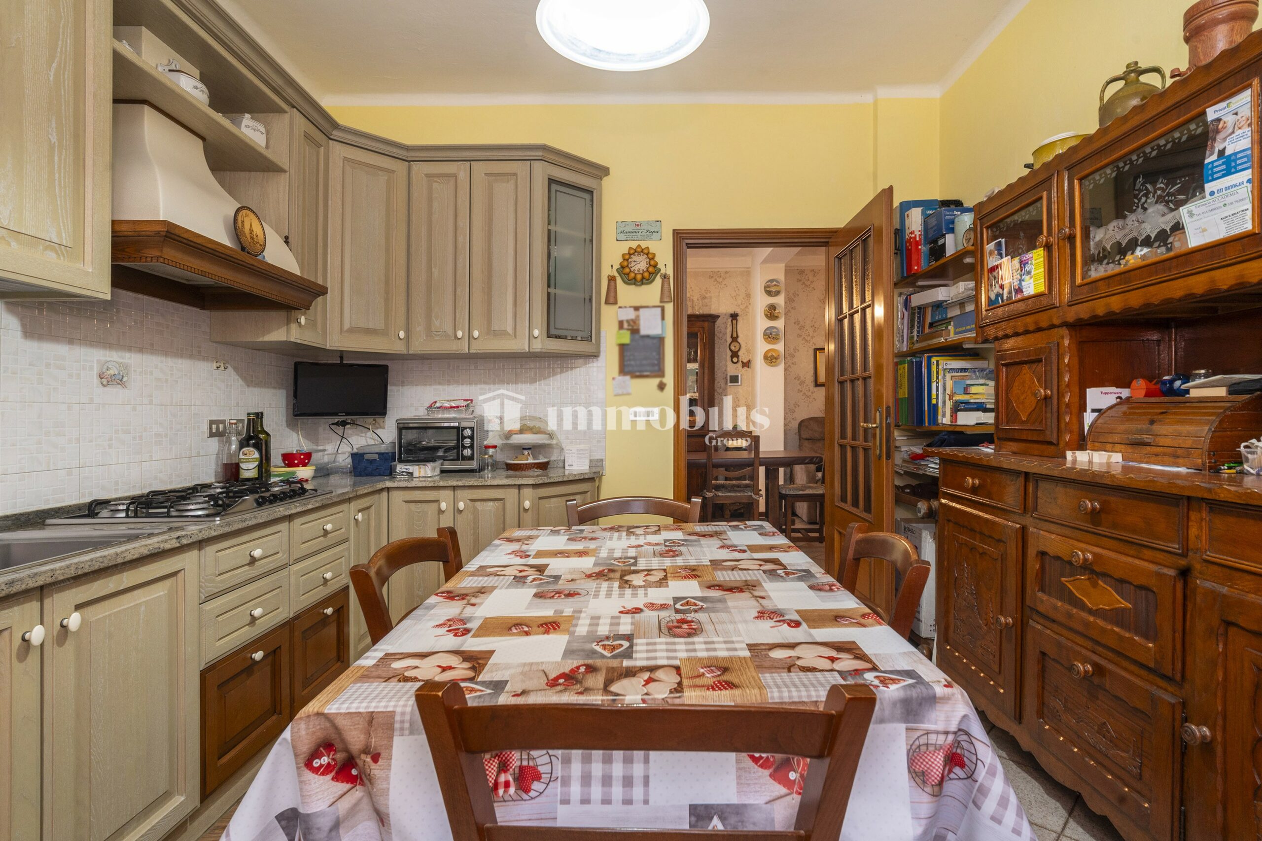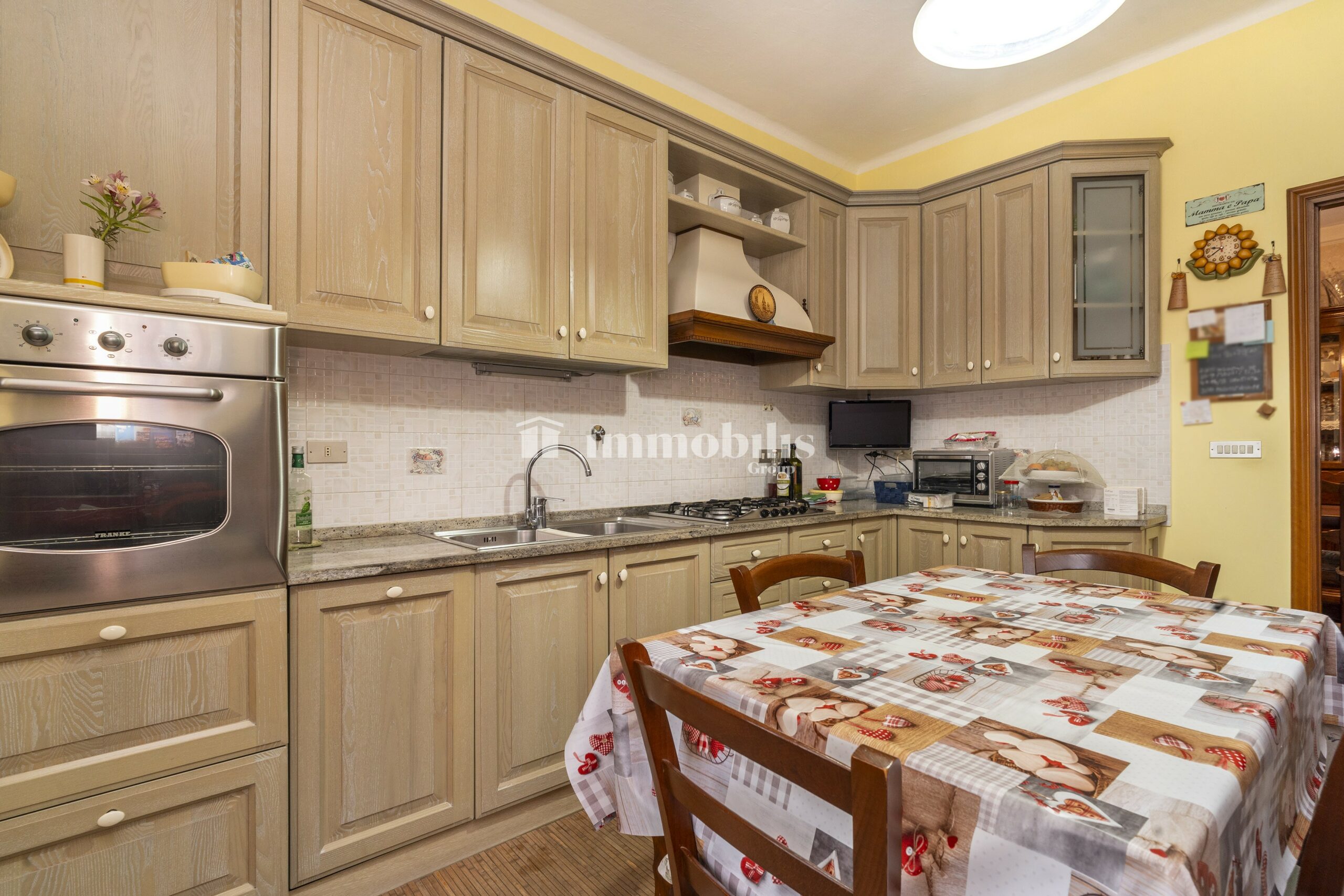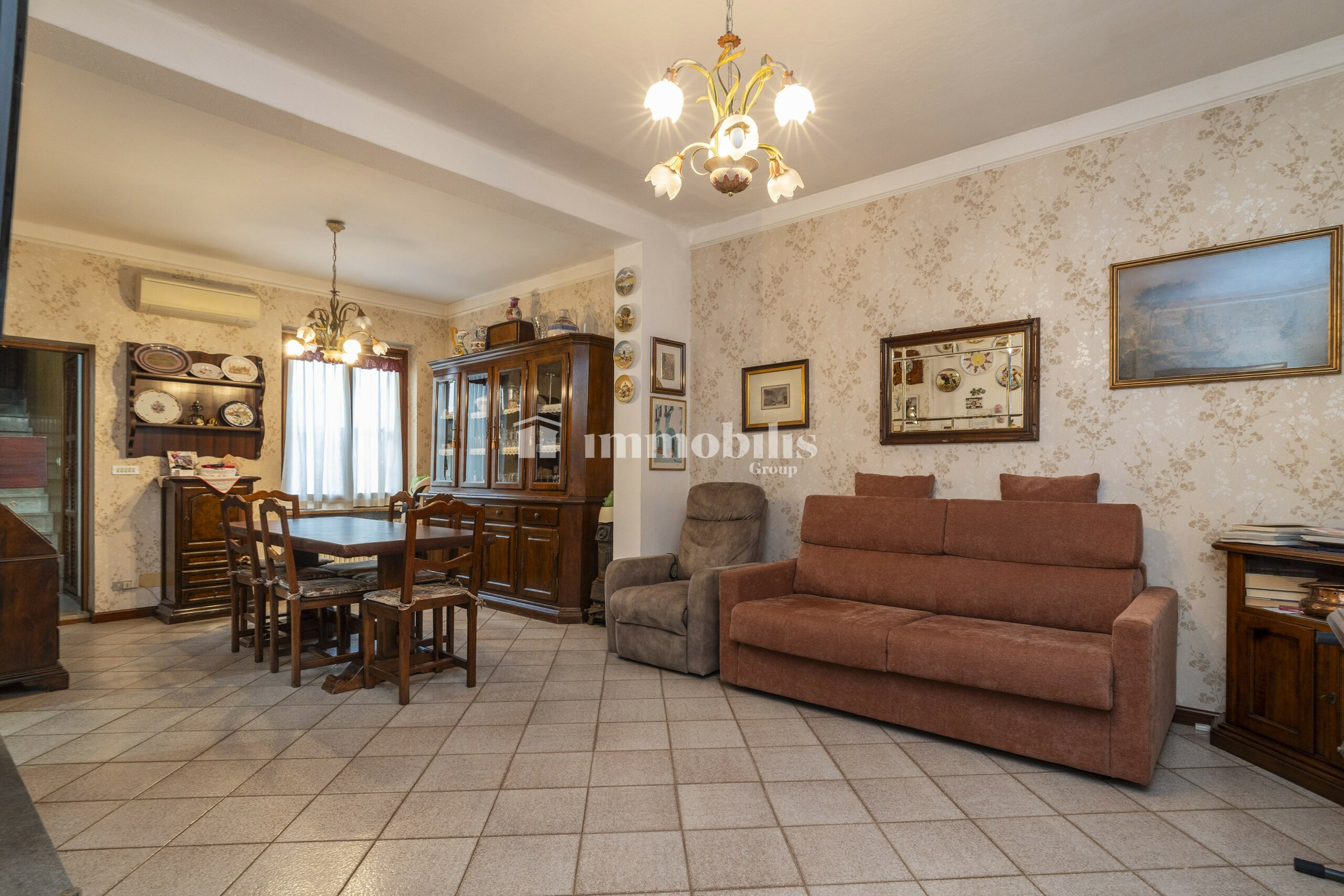 Al piano terra, ci accoglie una zona giorno ampia e luminosa, che può essere facilmente organizzata in soggiorno e sala da pranzo. La cucina abitabile è spaziosa e ben organizzata, con una cucina lineare disposta su due pareti ad angolo e un comodo tavolo da pranzo.